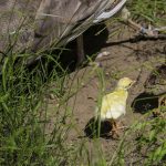 Taki paw jest całkowicie biały, jego zazwyczaj kolorowy tren, czyli ogon, również. Na razie maluch wygląda jak… kurczaczek.