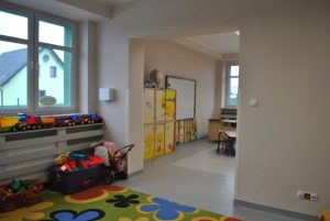 Dla potrzeb oddziału przedszkolnego zaadaptowano pomieszczenia znajdujące się na parterze w dawnej części gimnazjalnej budynku. Zakres prac obejmował budowę ścian wewnętrznych, wymianę stolarki oraz utworzenie nowego wejścia do budynku. Wykonano także instalacje wewnętrzne: wodno-kanalizacyjną, centralnego ogrzewania, elektryczną oraz wentylacyjną. W efekcie wydzielono nowe pomieszczenia, m.in. sanitariaty, szatnię, wiatrołap i dwie sale zajęciowe.