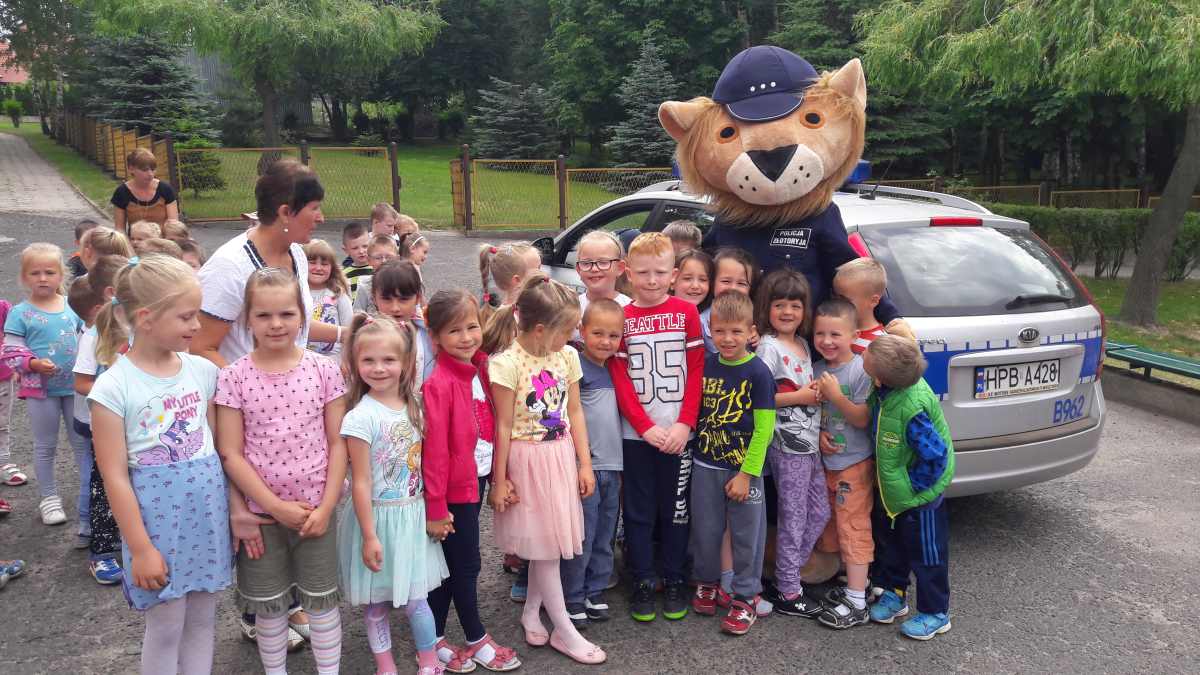 Dziec słuchały tego z dużym zainteresowaniem, ale najwięcej radości wśród małych słuchaczy wzbudziła wizyta niespodziewanego gościa – Komisarza Lwa. Maluchy bardzo chętnie przytulały się do policyjnej maskotki, robiły sobie z nią pamiątkowe zdjęcia i zadawały mnóstwo pytań.