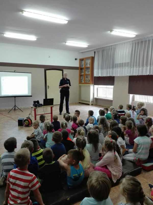 Policjanci przypomnieli kilka zasad, jakich warto przestrzegać podczas wakacji. Dzieci z zaciekawieniem słuchały wskazówek, jak należy się zachowywać podczas letnich kąpieli, wycieczek pieszych czy w kontaktach z osobami obcymi. Szczególną uwagę funkcjonariusze zwrócili na zagrożenia jakie można napotkać w Internecie, zachęcając do spędzania wolnego czasu na powietrzu podczas wspólnych zabaw z rówieśnikami. Przypomnieli także najważniejsze numery alarmowe oraz co trzeba zrobić, kiedy ktoś zgubi się w tłumie lub na plaży.
