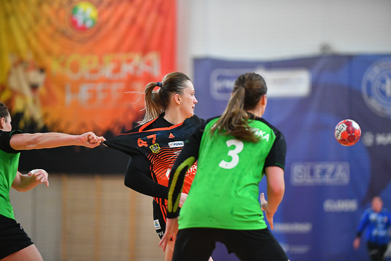Początek drugiej połowy nie wskazywał na emocje w końcówce spotkania. KPR utrzymywał kilkubramkową przewagę, a Miedziowe miały problemy ze sforsowaniem miejscowej defensywy. I kiedy wydawało się, że Kobierzyce pewnie zmierzają po trzy punkty, wówczas obudziły się Miedziowe. Między słupkami jeszcze lepiej spisywała się Monika Maliczkiewicz, która obok bramkarki KPR-u wyrastała na bohaterkę spotkania, a jej koleżanki z drużyny skutecznie kończyły akcje w ofensywie. Lubinianki długo czekały na odzyskanie prowadzenia z samego początku spotkania, aż w końcu się udało… Trzy minuty przed końcem bramkę na 17:16 rzuciła Karolina Kochaniak, a emocje sięgnęły zenitu. Miedziowe zaczęły swój koncert, a ozdobą spotkania była wrzutka, zakończona bramką. Lubinianki miały swoje szanse, aby odskoczyć na dwie bramki i przypieczętować zwycięstwo, ale remis wciąż był w zasięgu KPR-u. Przy remisie po 17 znów na prowadzenie wyszło Zagłębie, tym razem za sprawą Patrycji Świerżewskiej. Czas upływał, a Miedziowe były coraz bliżej wygranej, do które zabrakło… 12 sekund. To właśnie 12 sekund przed końcową syreną Kobierzyce rozegrały rzut wolny, który na bramkę zamieniła Kinga Jakubowska i mieliśmy rzuty karne.