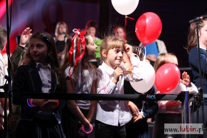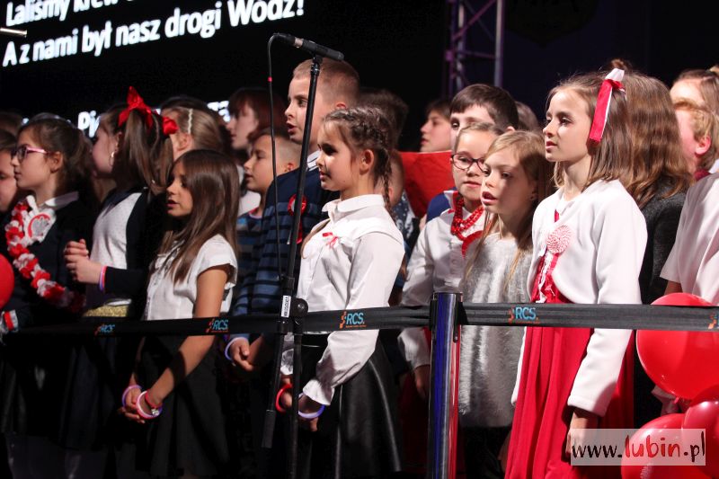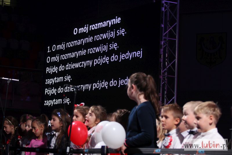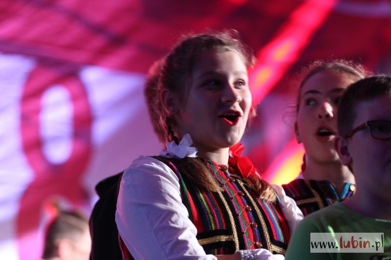 Na scenie występowały dzieci z lubińskich szkół i przedszkoli. Do tej uroczystości maluchy przygotowywały się od tygodni. Kolorowe przebrania i niełatwy tekst opanowały do perfekcji. Takie wydarzenia sprawiają, że od najmłodszych lat patriotyzm jest dzieciom bliski i dobrze się kojarzy. – Bardzo lubię śpiewać i cieszę się, że uczymy się takich piosenek. Niektóre są smutne, niektóre bardzo wesołe – mówi Ania ze Szkoły Podstawowej nr 8 w Lubinie.