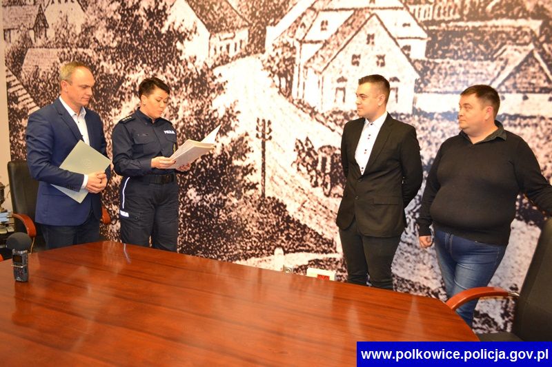 Nadkom. Joanna Cichla podziękowała polkowiczanom za czujność, zaangażowanie, odwagę i godną naśladowania postawę. Zdecydowana reakcja udaremniła dalszą jazdę pijanemu kierowcy, który stwarzał realne zagrożenie dla zdrowia i życia innych uczestników ruchu drogowego.