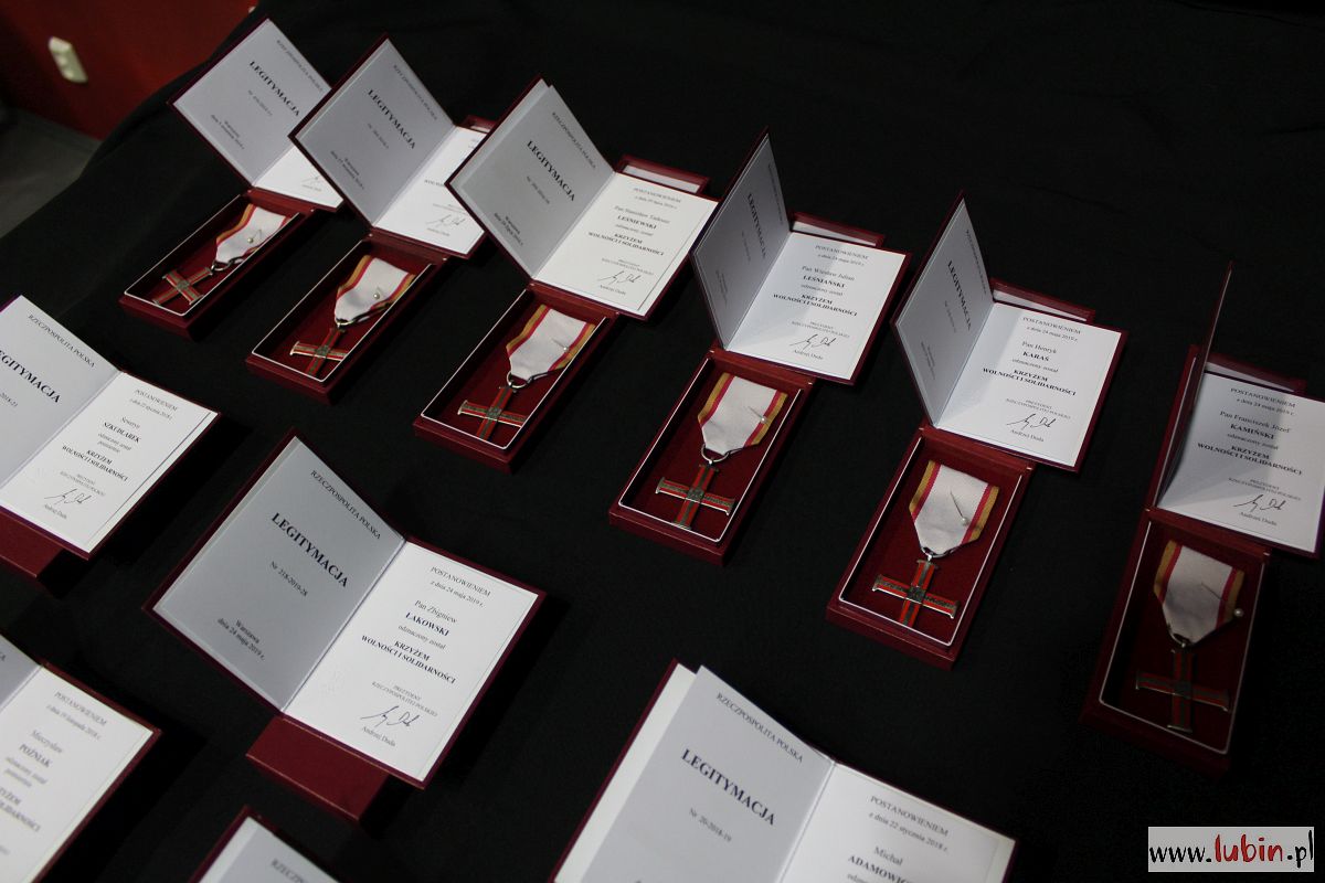 20 mieszkańcom naszego regionu przyznano Krzyże Wolności i Solidarności. Odznaczono również pośmiertnie ofiary Zbrodni Lubińskiej: Michała Adamowicza, Mieczysława Poźniaka i Andrzeja Trajkowskiego. – Ta uroczystość jest momentem, kiedy państwo polskie spłaca dług zaciągnięty u tych wszystkich ludzi, którzy w latach komunistycznego zniewolenia położyli na szali swoją wolność osobistą, dobro swoich rodzin, a potem przez lata żyli w zapomnieniu – napisał w liście skierowanym do odznaczonych prezes Instytutu Pamięci Narodowej Jarosław Szarek.