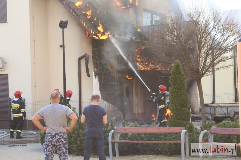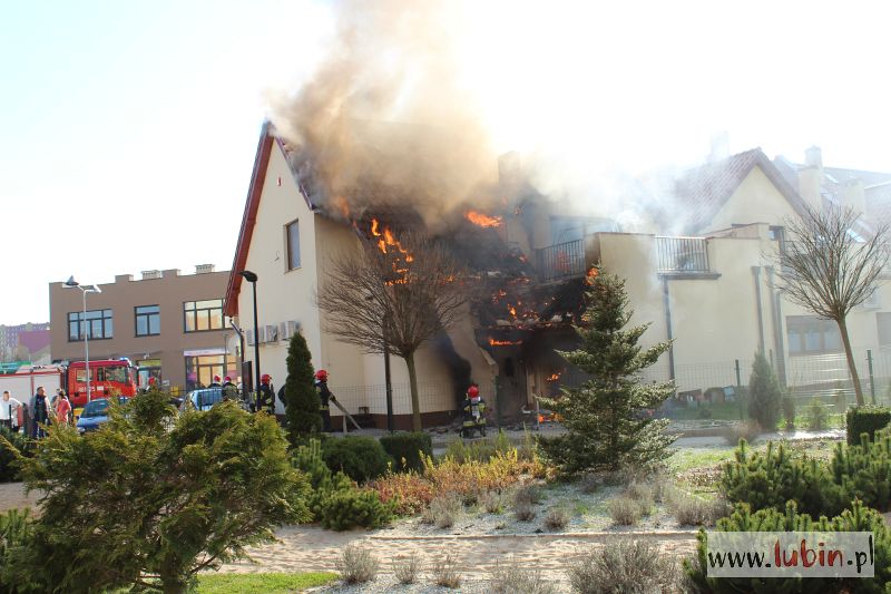 pożar, wileńska, straż pożarna, 1 kwietnia 2017 (8)Dziś po południu nie dało się nie zauważyć czarnego dymu unoszącego się nad Lubinem. Na ulicy Wileńskiej palił się domek jednorodzinny. Pożar wyglądał bardzo groźnie, na szczęście mieszkańcy zdążyli szybko opuścić budynek.