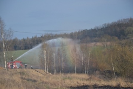 W akcji gaśniczej brało udział aż sześć zastępów straży pożarnej ze Złotoryi oraz okolicznych miejscowości. Łącznie spaliło się około dwóch hektarów trawy. Ogień udało się pokonać za pomocą wody i tłumic. Ze względu na trudne warunki terenowe, dwa ciężkie wozy strażackie utknęły na grząskiej powierzchni. W ich uwolnieniu konieczna była pomoc wyciągarek.