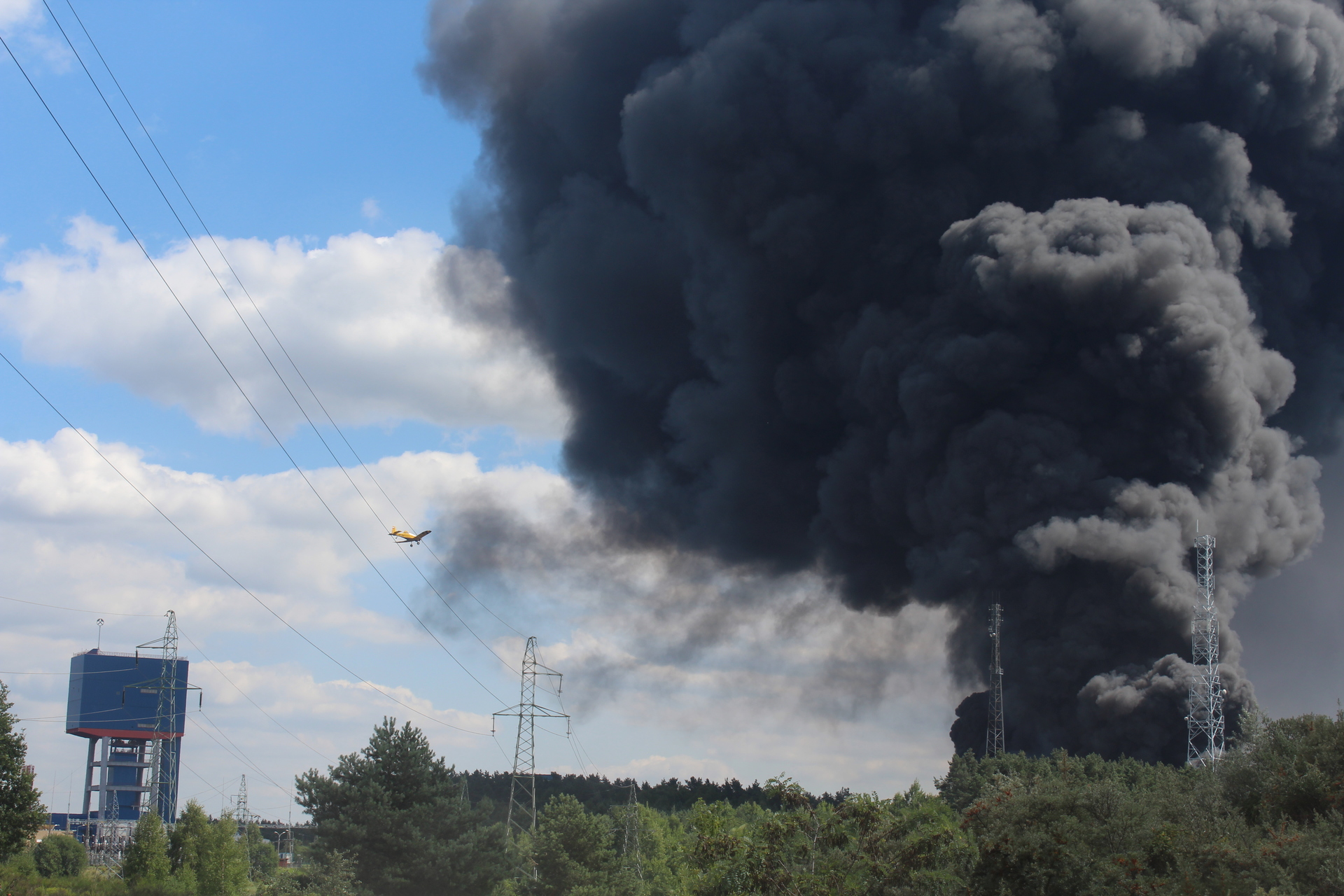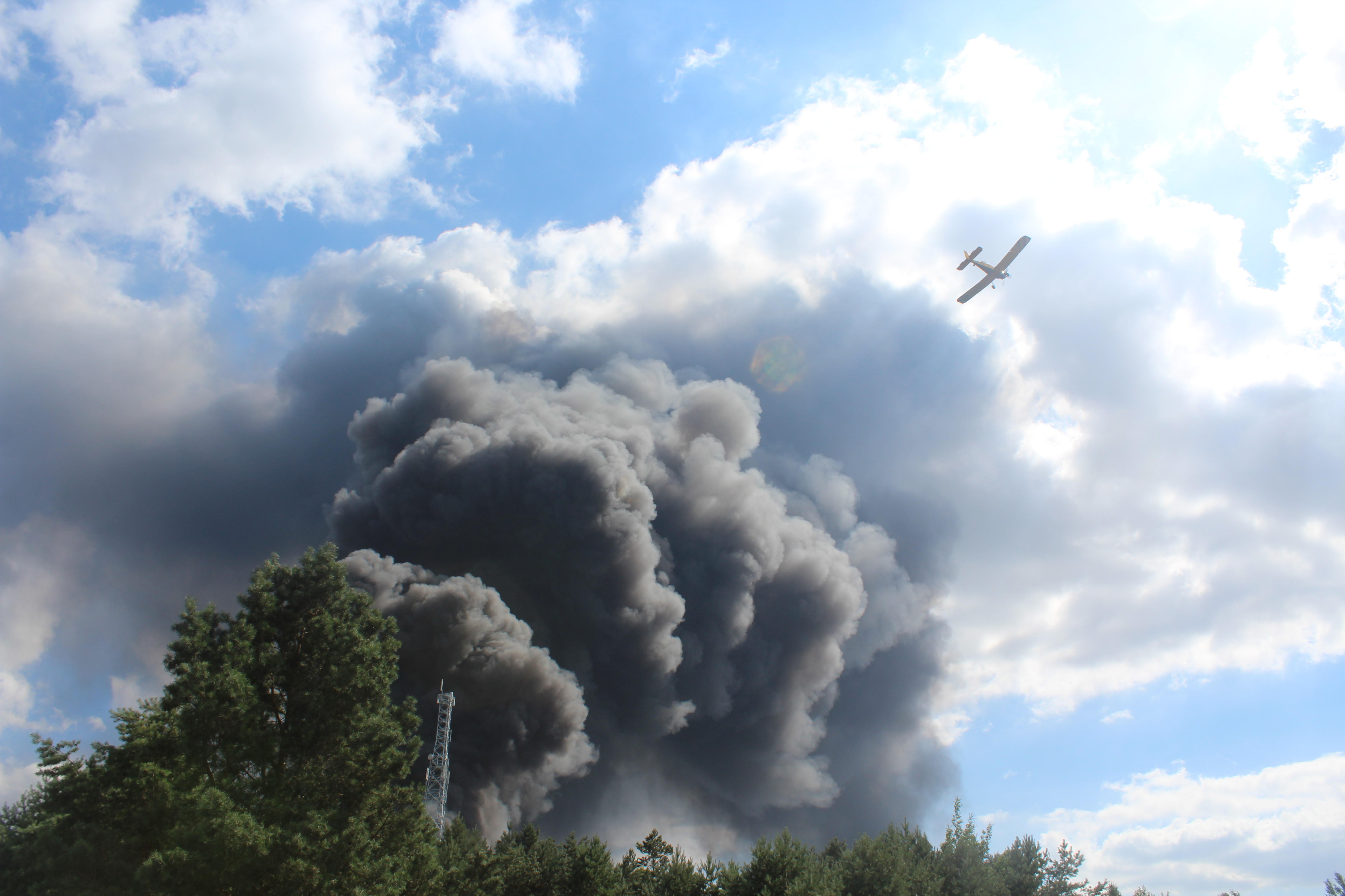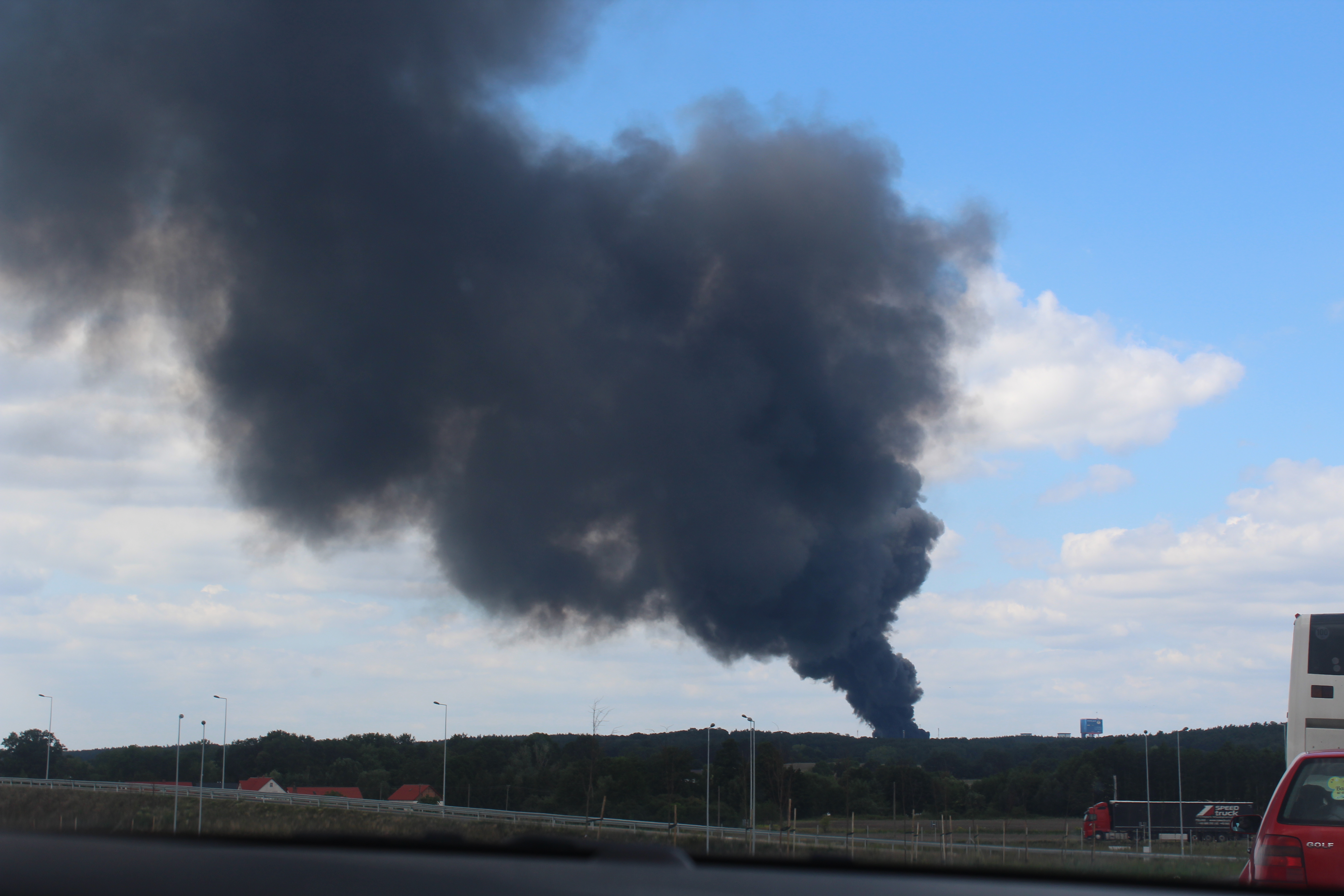 Pożar wybuchł w godzinach popołudniowych. Nad okolicą unoszą się ogromne, czarne kłęby dymu, które widoczne są z odległości aż kilkudziesięciu kilometrów.