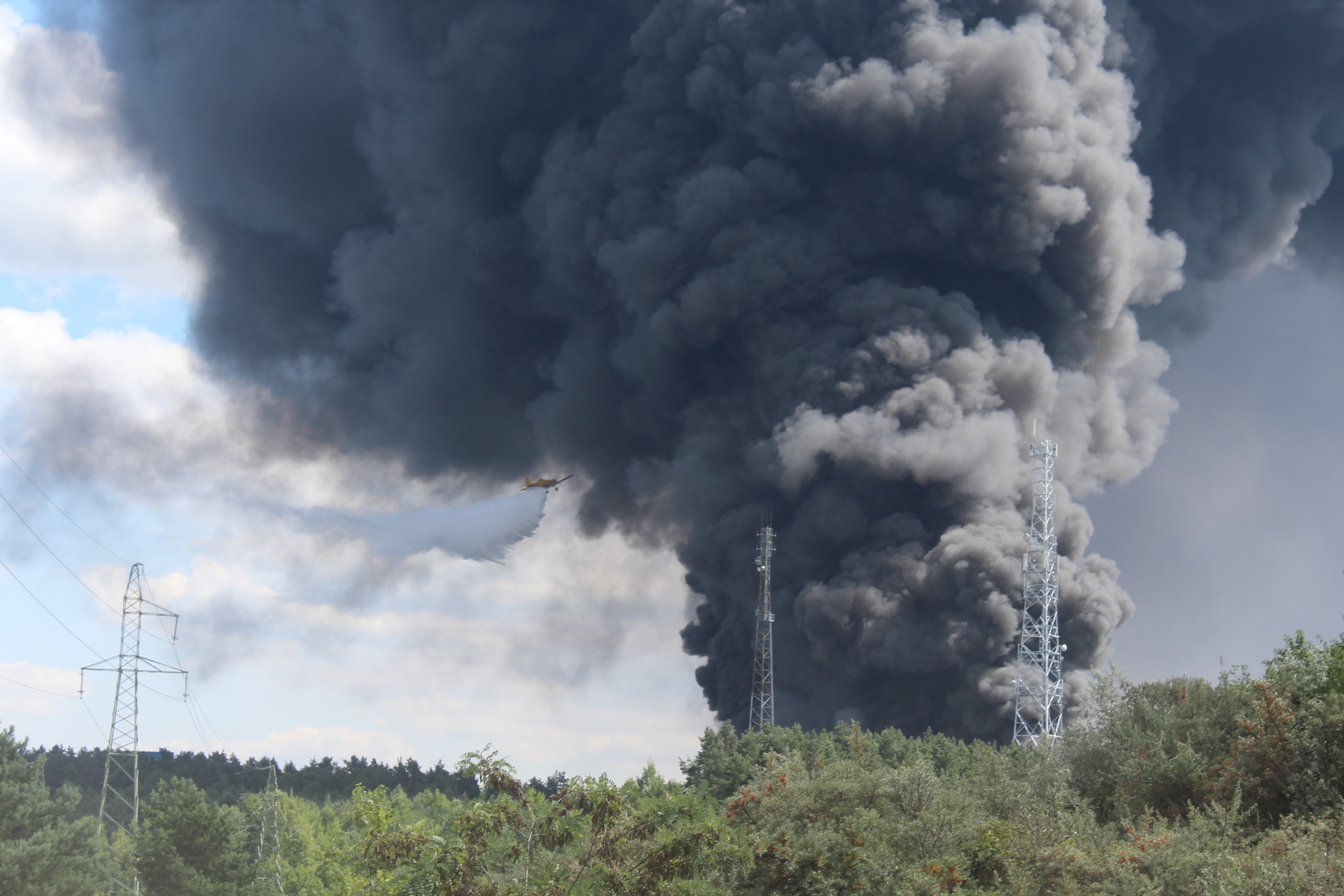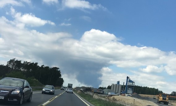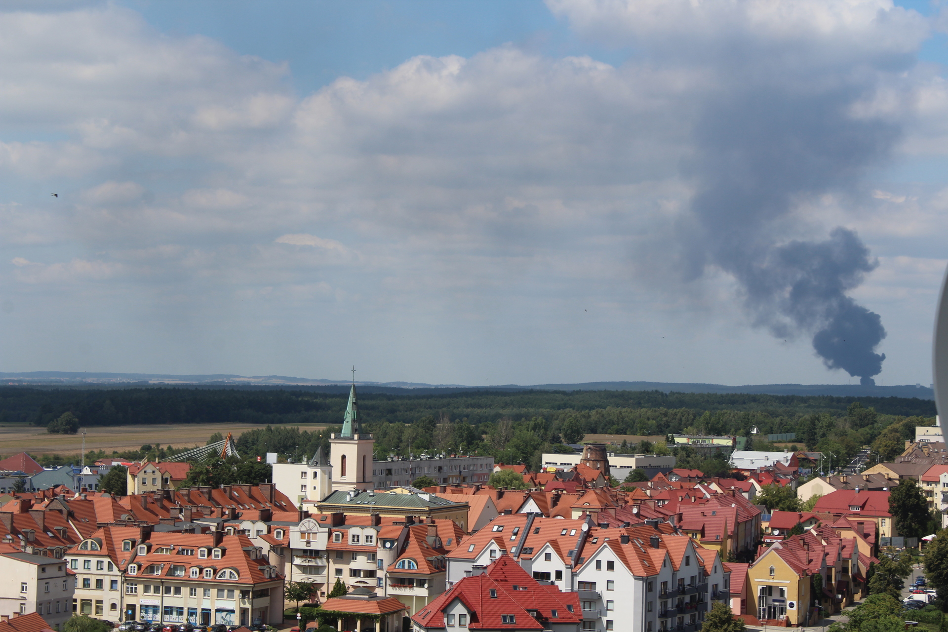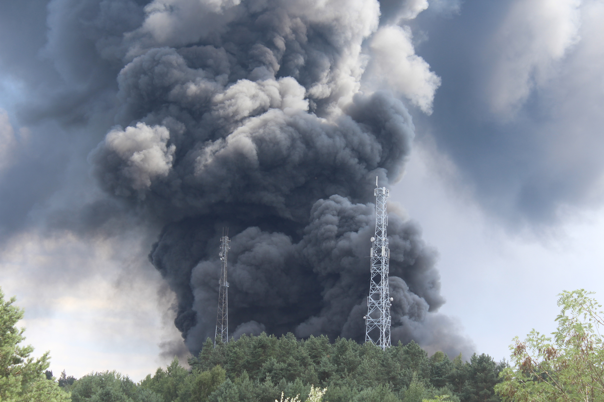 Pożar wybuchł w godzinach popołudniowych. Nad okolicą unoszą się ogromne, czarne kłęby dymu, które widoczne są z odległości aż kilkudziesięciu kilometrów.