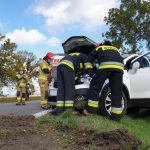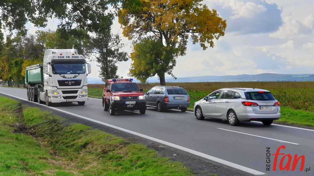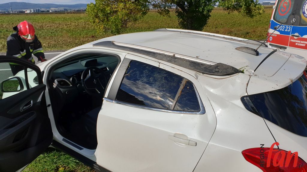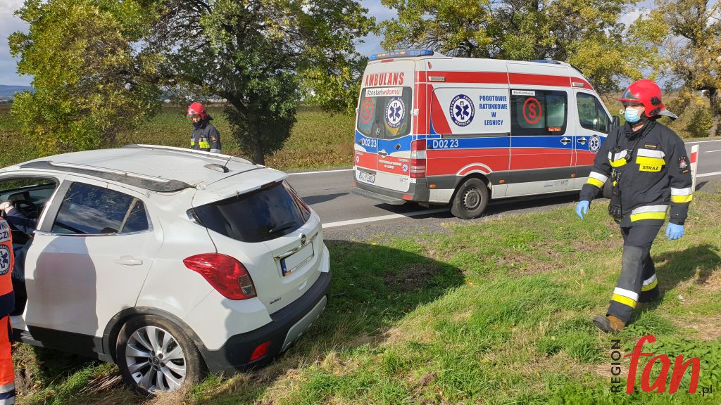 Opel Mokka na prostym odcinku DW323 nagle zjechał na pobocze i przekoziołkował w rowie. W pojeździe znajdowała się kierująca kobieta, która wybierała się do znajomych nad morze. Służby ratunkowe zostały powiadomione automatyczne przez system SOS e-call. Z informacji Crash Notification wynikało, że pojazd znajduje w Jaworze na ul. Lubińskiej 4. W rzeczywistości pojazd był 2 km dalej, w okolicy ronda z trasą ekspresową S3. Po weryfikacji na miejsce dotarł Zespół Ratownictwa Medycznego, który udzielił poszkodowanej pomocy. Hospitalizacja nie była konieczna. Obecni na miejscu funkcjonariusze ustalili, że kierująca podczas wymijania z pojazdem ciężarowym zjechała zbyt blisko prawej krawędzi jezdni i „złapała pobocze”. Auto przekoziołkowało w rowie i zatrzymało się na kołach. Za spowodowanie kolizji policjanci ukarali kierującą mandatem karnym. Przez kilkadziesiąt minut ruch na trasie odbywał się wahadłowo. Do czasu przyjazdu służb drogowych miejsce zabezpieczyli strażacy z JRG PSP Jawor.