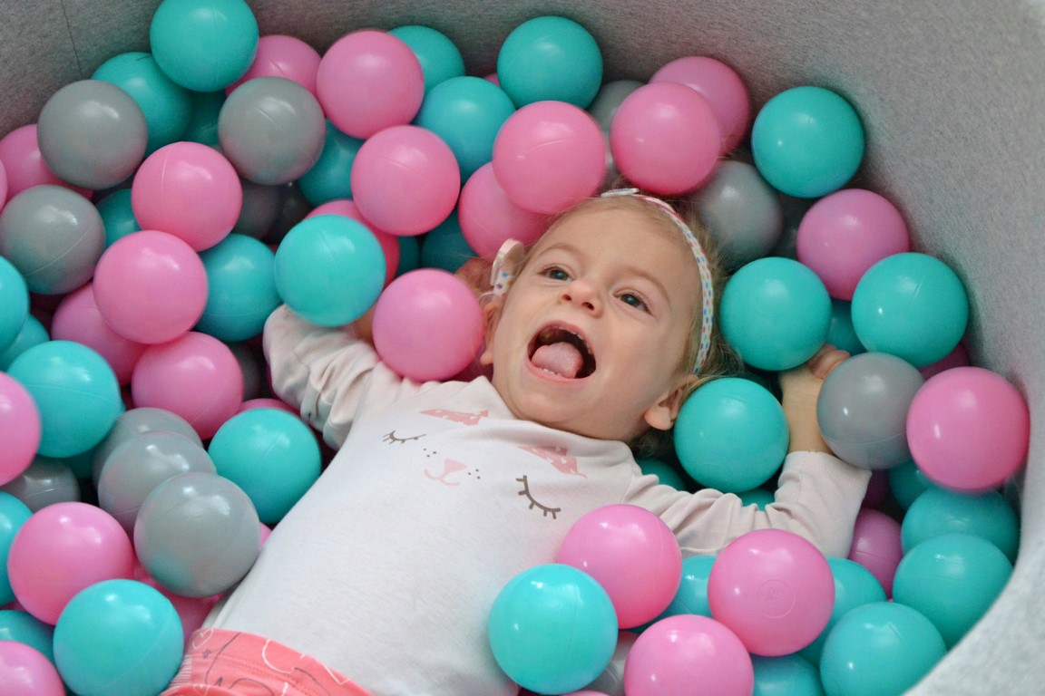Teraz dziewczynka bawi się na dywanie albo nurkuje w plastikowych kulkach, które – podobnie jak wszystkie zabawki w domu – służą nieustannej rehabilitacji. Iga skończyła dwa lata, ale nie mówi, nie siada i nie chodzi. Ma obniżone napięcie mięśniowe, małogłowie, zez naprzemienny i obustronny głęboki niedosłuch. Pół roku temu, po przesiewowych badaniach wykonanych na sprzęcie zakupionym przez WOŚP, udało się w Klinice Słuchu w Kajetanach pod Łodzią, wszczepić implant słuchu.