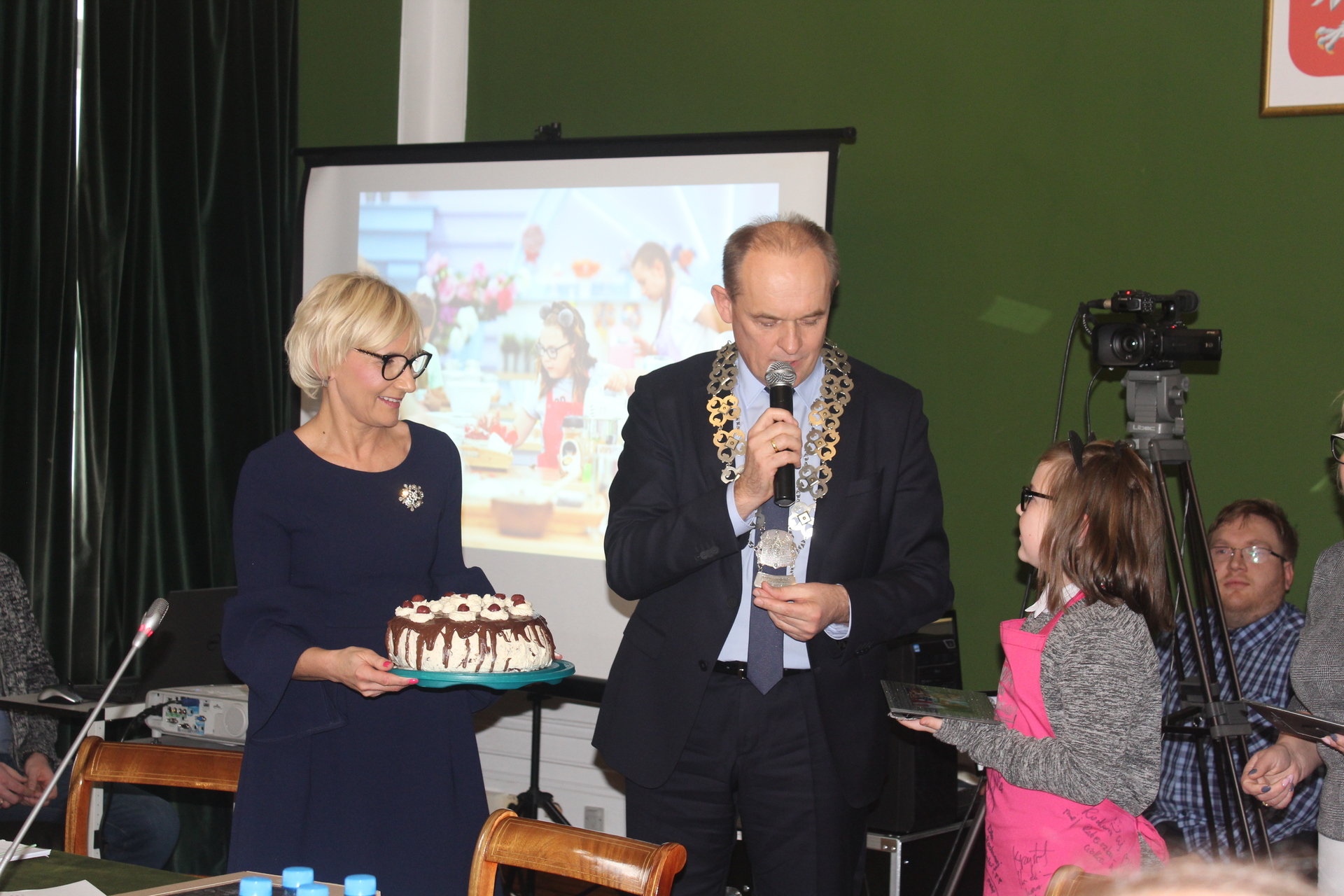 Podczas posiedzenia nagrodzono także Julię Tarach, młodą polkowiczankę, która przez kilka tygodni była uczestniczką programu telewizyjnego Bake Off Junior i z dumą promowała swoje miasto. Ta zrewanżowała się tortem i pamiątkowymi zdjęciami.