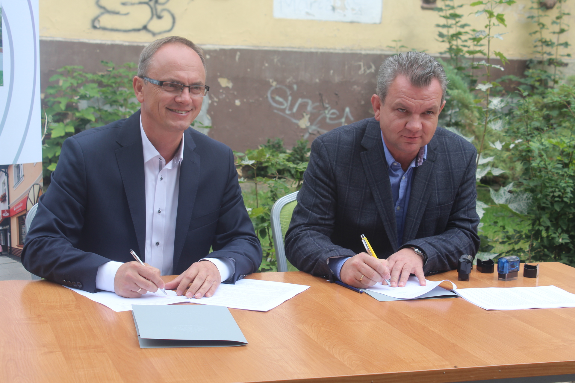 Umowę podpisali Wiesław Wabik, burmistrz Polkowic i Rajmund Wróbel, prezes firmy Radoxim Beton System z Grębocic, wykonawcy przebudowy.