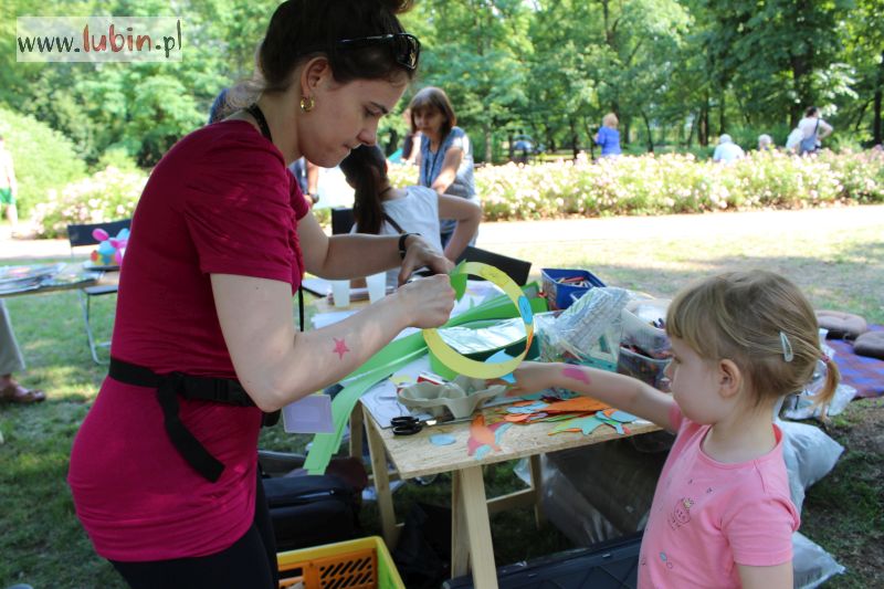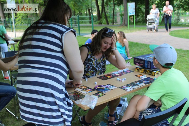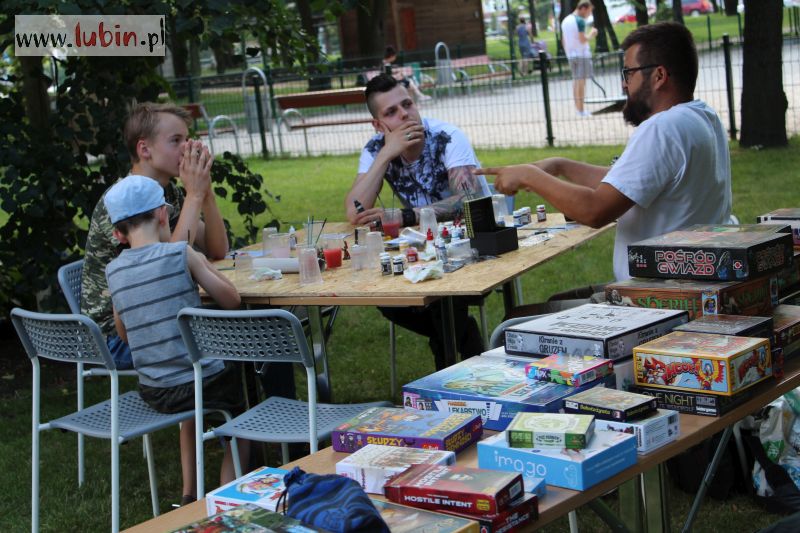 Atrakcji w parku było dziś wiele, ale najwięcej radości z pewnością mieli najmłodsi. Klauny robiły dla nich balononowe kwiatki i zwierzęta, puszczały bańki mydlane i organizowały zabawy. Z kolei pracownice biblioteki robiły maluchom tatuaże czy opaski na głowę. Starsi mogli z kolei zmierzyć się z planszówkami – to stoisko przygotowali dla nich członkowie Lubińskiego Klubu Fantastyki „Ostatnie Przymierze”.