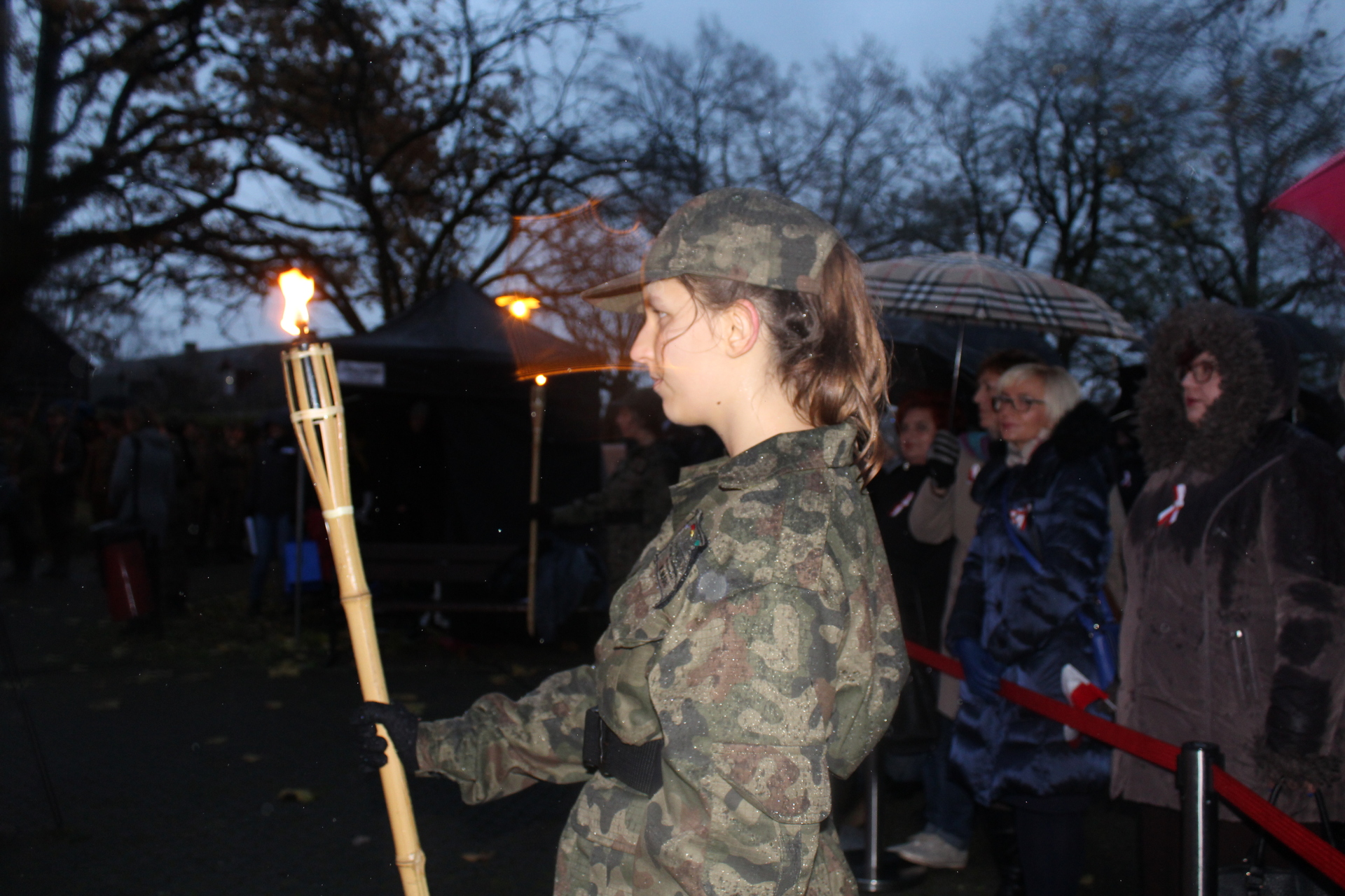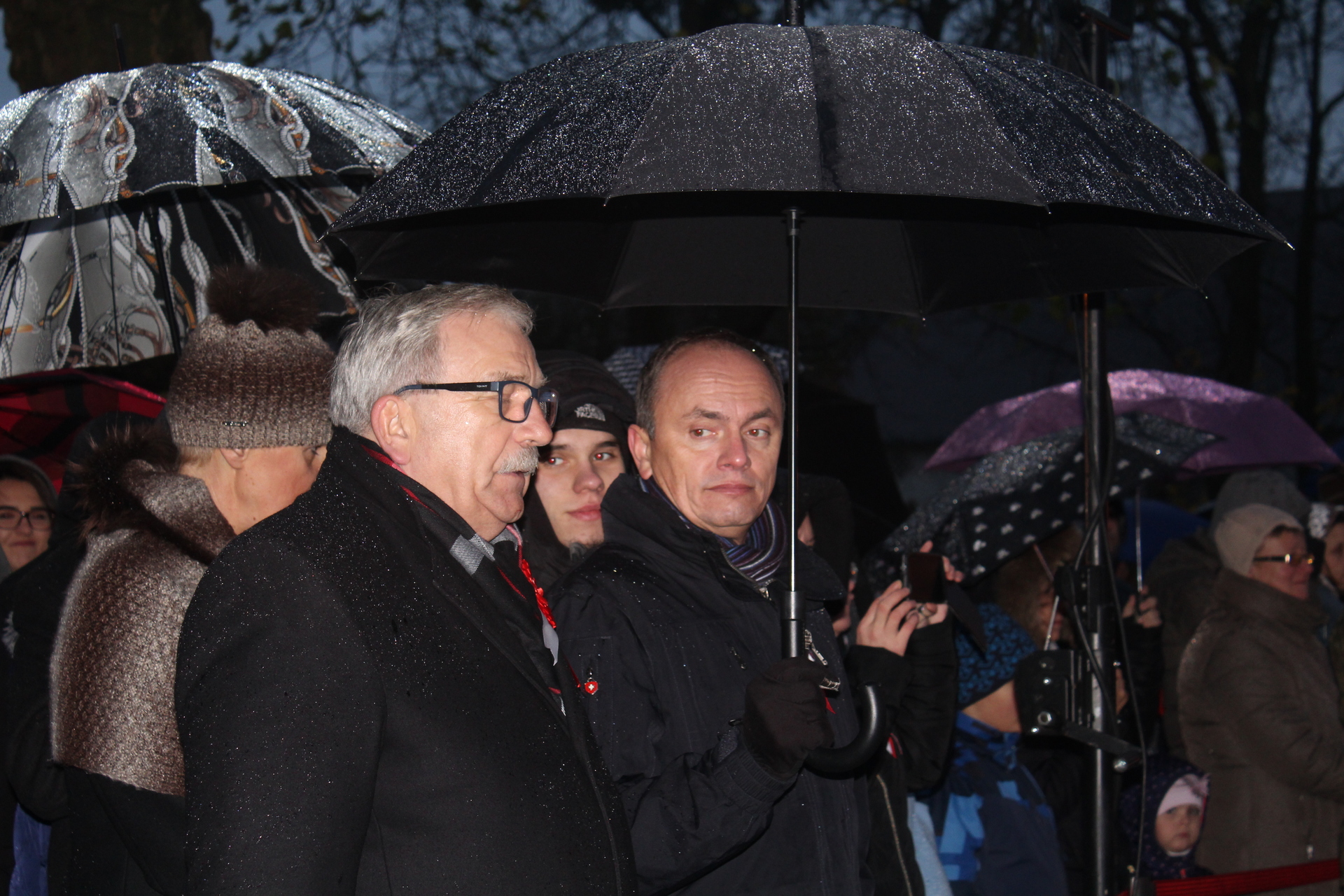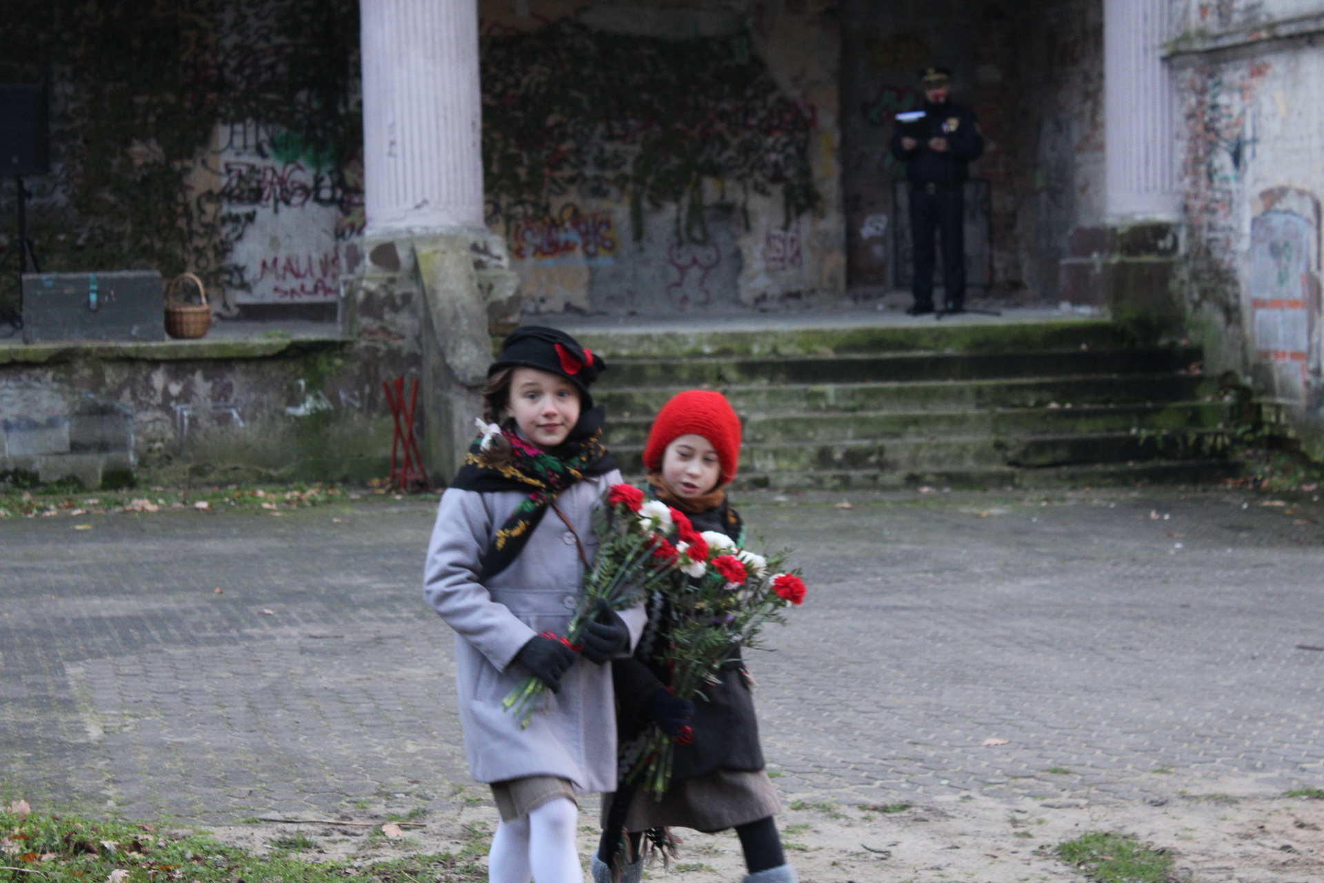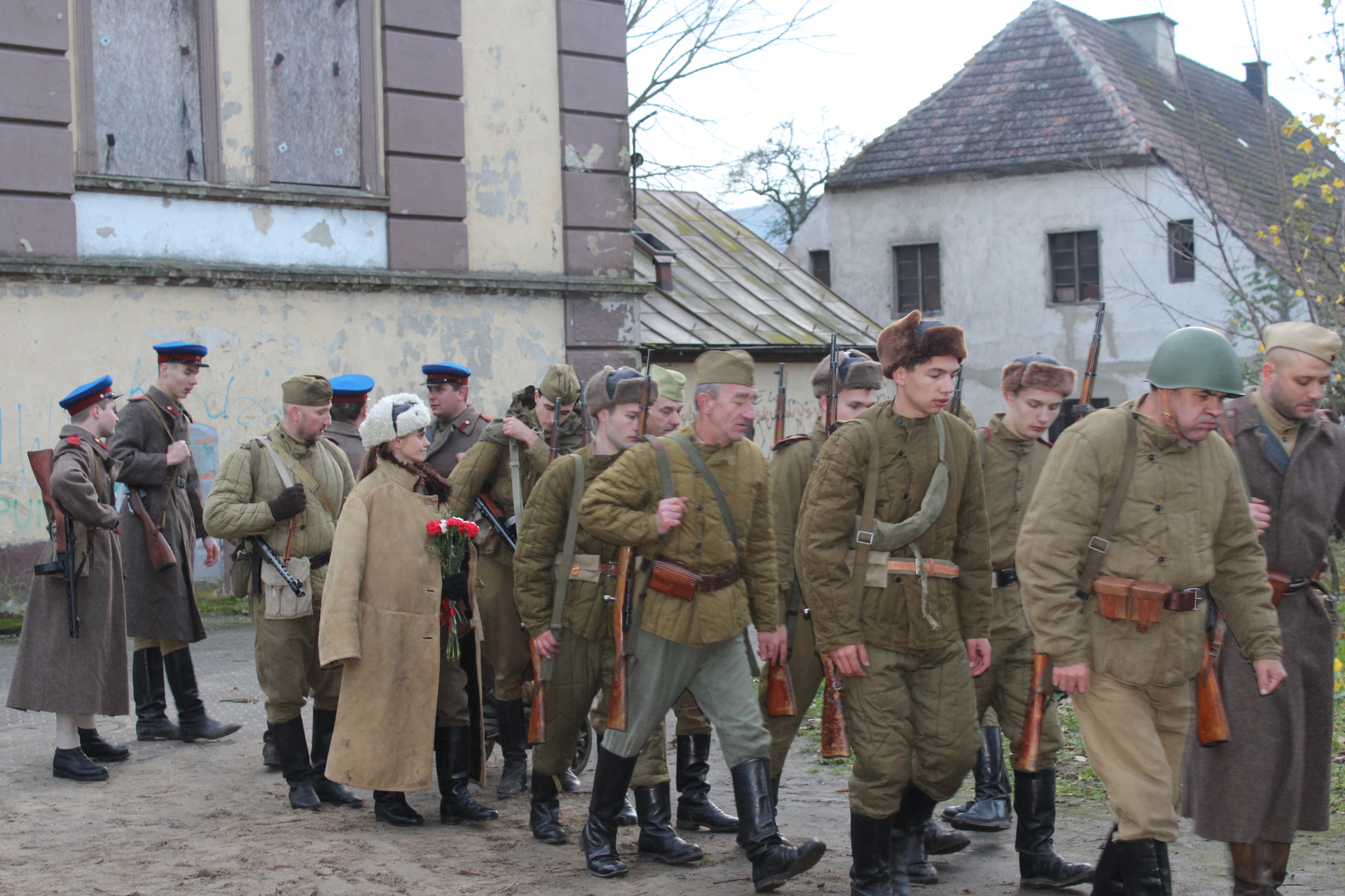 Część patriotyczna uroczystości, z udziałem władz powiatu i gminy, odbyła się po rekonstrukcji historycznej „Wyzwolenie 1945” przygotowanej przez Towarzystwo Historyczne „Victoria” w przypałacowym parku.