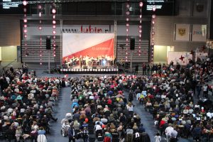 W hali zebrały się wszystkie pokolenia. Teksty pieśni wyświetlano na telebimie, dzięki czemu nikt nie wymawiał się nieznajomością słów.