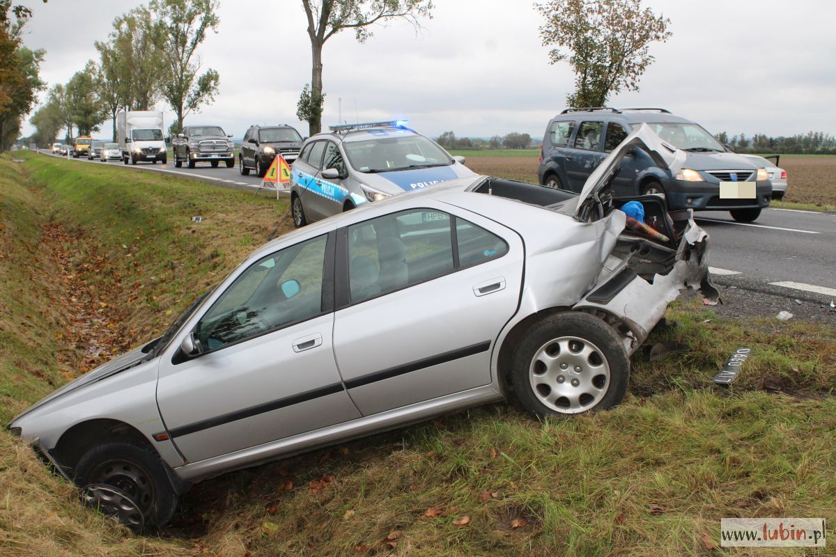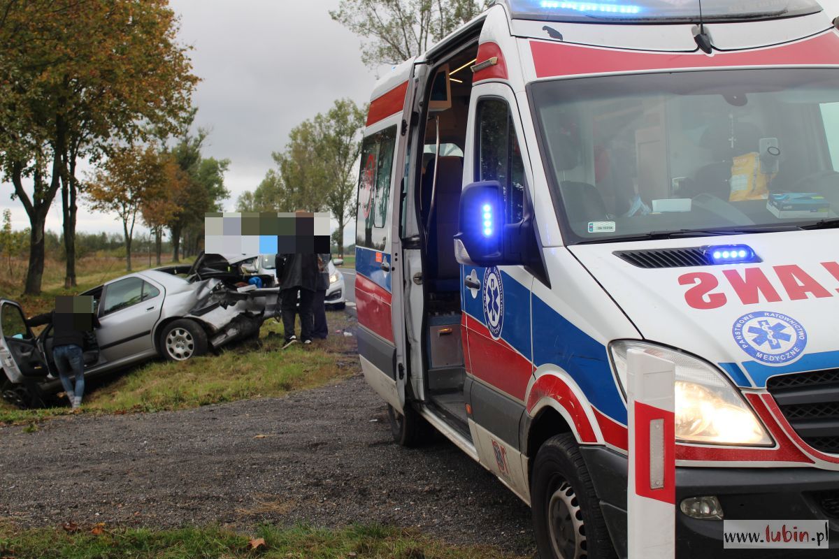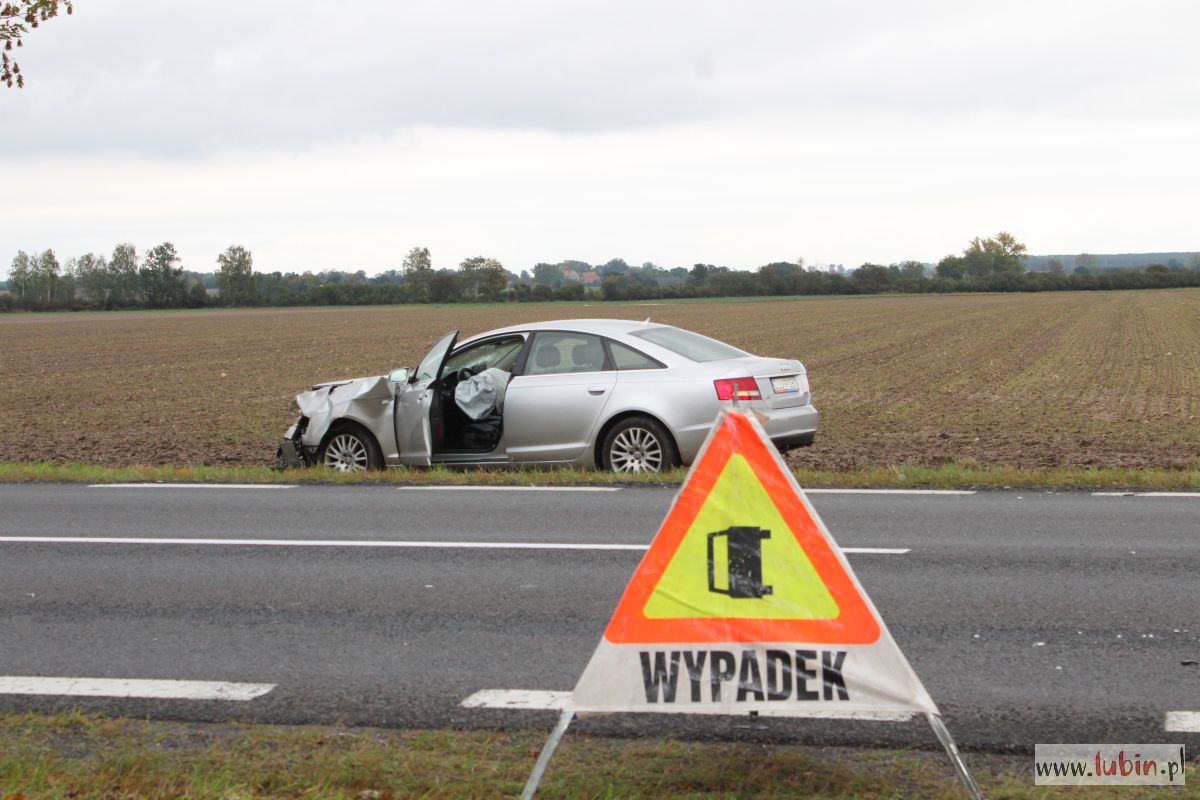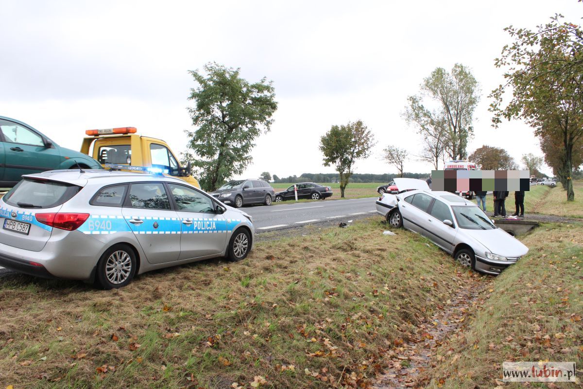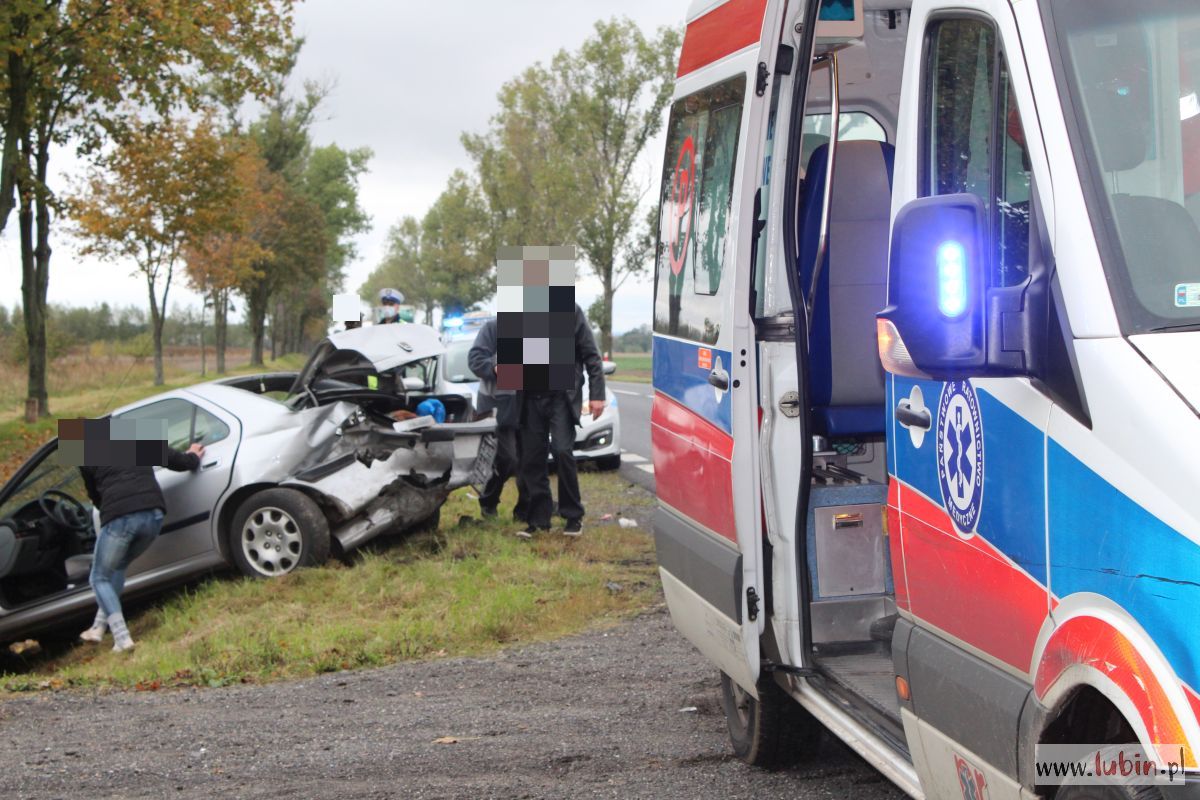 AKTUALIZACJA: Winą za wypadek obarczono kierowcę peugeota, na którego nałożono mandat karny. Jak informuje rzeczniczka lubińskiej policji, mężczyzna stworzył zagrożenie w ruchu, ponieważ podczas manewru skrętu nie upewnił się, czy lewy pas drogi jest wolny.