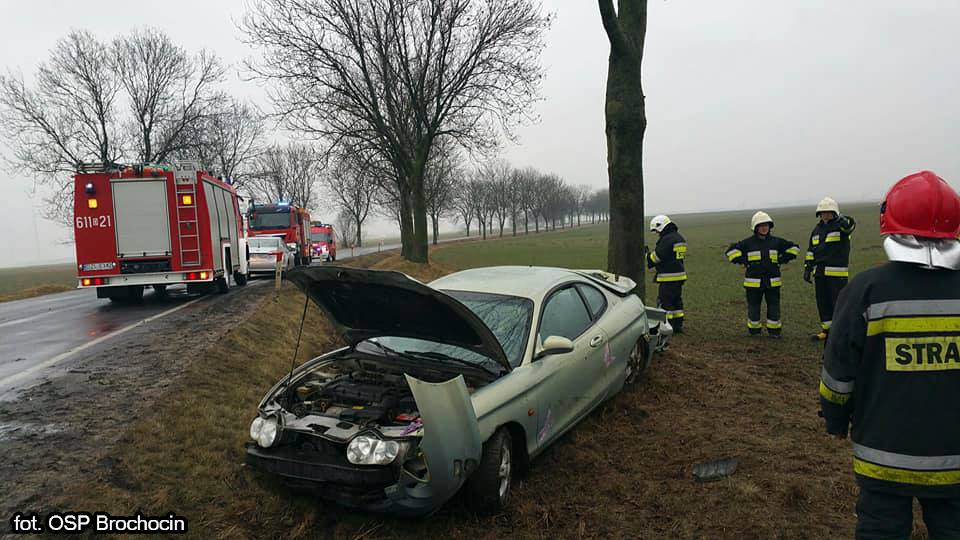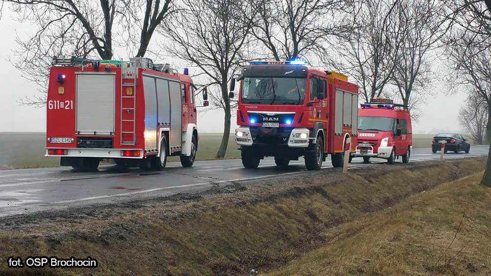 Jeszcze przed przyjazdem służb ratunkowych 69-latka samodzielnie wydostała się z rozbitego auta. Na miejsce zdarzenia przybyli strażacy z Jednostki Ratowniczo-Gaśniczej w Złotoryi, ochotnicy z Brochocina i Zagrodna, a także zespół pogotowia ratunkowego i patrol policji. Oprócz kobiety w pojeździe, który miał lubańskie tablice rejestracyjne, znajdował sie także jej pies. Kierująca nie poniosła poważniejszych obrażeń ciała i odmówiła przewiezienia do szpitala.