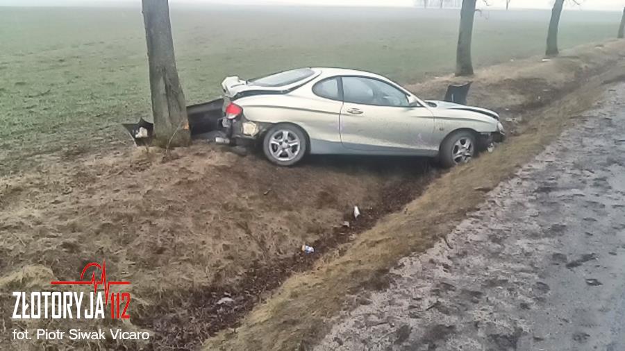 Do groźnej kolizji doszło na odcinku drogi wojewódzkiej nr 328 pomiędzy Łukaszowem a Nową Wsią Złotoryjską. Prowadząca osobowego hyundaia 69-letnia kobieta na łuku drogi straciła panowanie nad kierownicą i uderzyła w drzewo. Samochód ostatecznie wylądował w rowie.