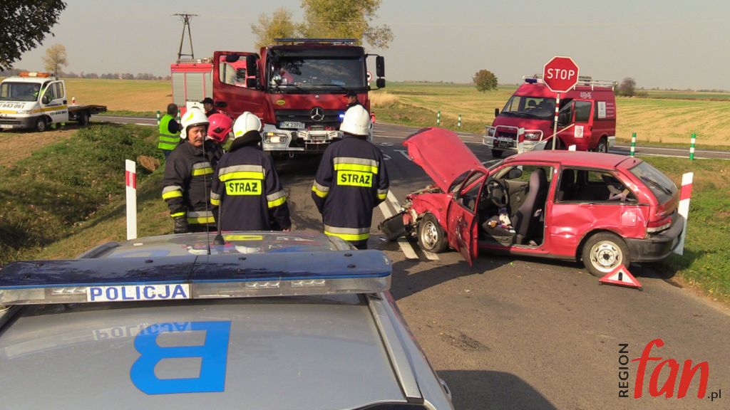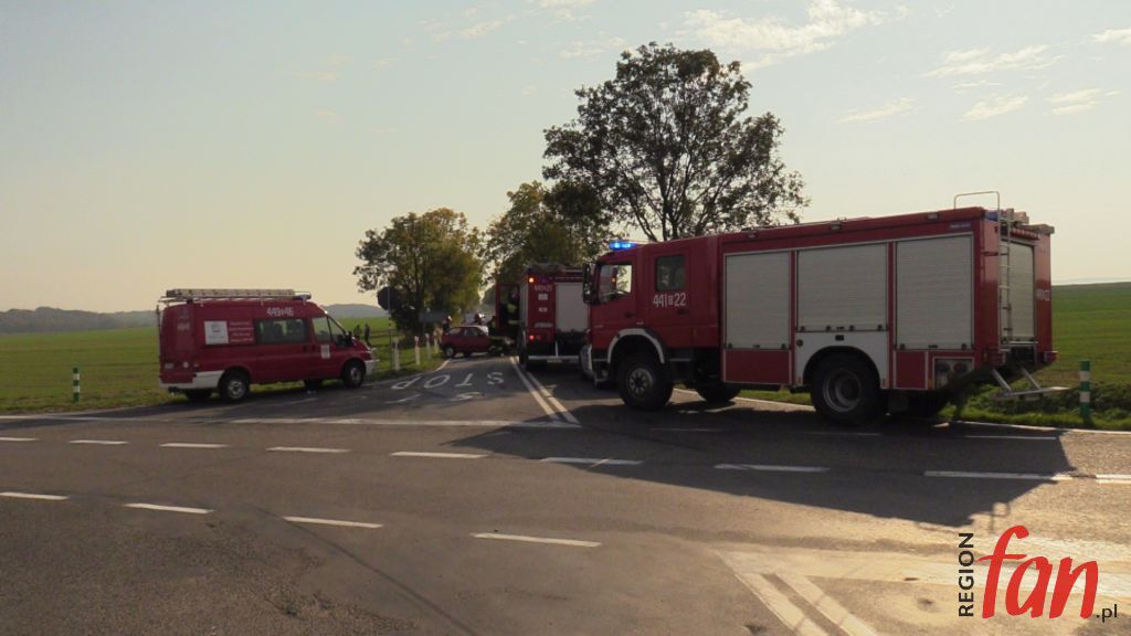 Do zdarzenia doszło na skrzyżowaniu drogi wojewódzkiej w kierunku Ujazdu Górnego. Jadący drogą podporządkowaną od strony Snowidzy nie zatrzymał się na przed znakiem „stop” i uderzył w prawidłowo jadące suzuki. Rozpędzony opel wjechał w pole, zatrzymując się kilkadziesiąt metrów od miejsca zdarzenia. Pomocy medycznej potrzebowała kierująca suzuki kobieta.