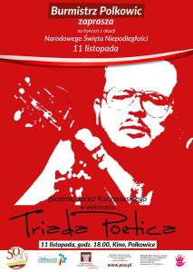Z okazji Święta Niepodległości, 11 listopada, w polkowickim Kinie odbędzie się koncert piosenek Jacka Kaczmarskiego. Utwory barda zaprezentuje Triada Poetica.