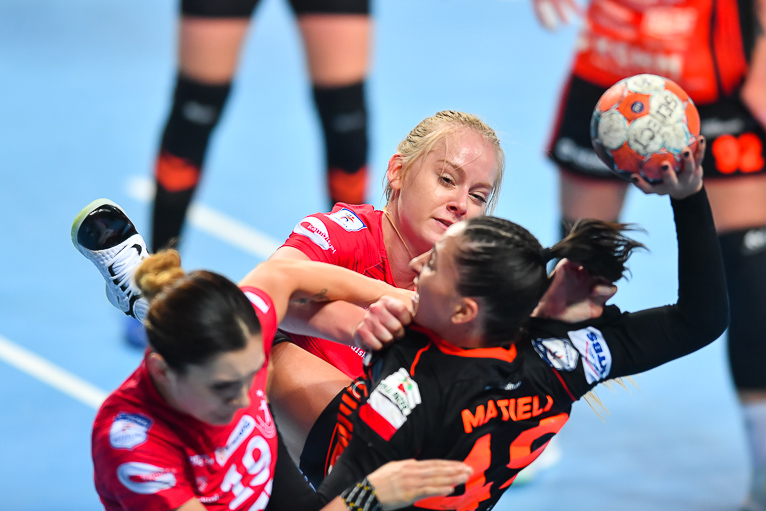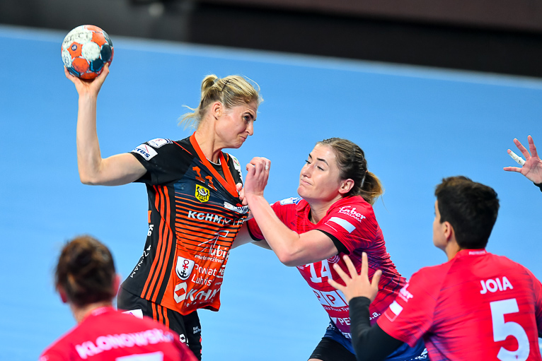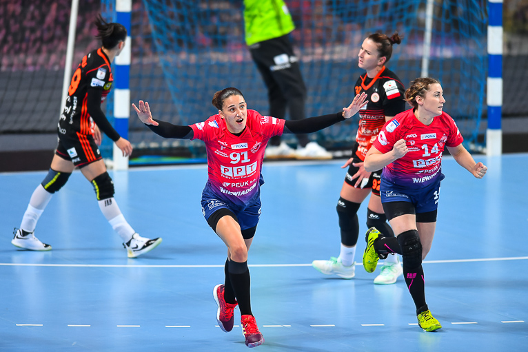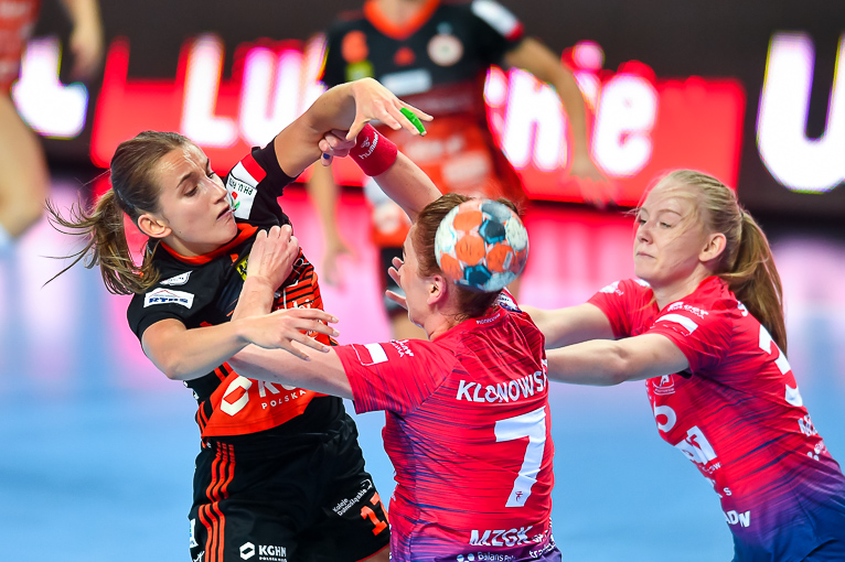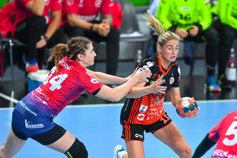 Pierwszą bramkę zdobyły przyjezdne i kiedy lubinianki szybko wyszły na 2:1 wydawało się, że pójdą za ciosem. Na to przez długi czas nie pozwalała jednak Piotrcovia, która „trzymała” wynik w okolicach remisu, głównie za sprawą skutecznych rzutów Victorii Macedo. Podopieczne Bożeny Karkut zaczęły budować swoją przewagę w ostatnich dziesięciu minutach drugiej połowy, kiedy zdobyły kilka bramek z rzędu. Zawodniczki Metraco Zagłębia Lubin poprawiły obronę i skuteczność w ataku, co przyniosło efekt. Pięć minut przed końcem pierwszej połowy na tablicy wyników było 14:10. W ostatnich fragmentach tej części spotkania padła jeszcze tylko jedna bramka, zdobyły ją lubinianki i do przerwy było 15:10.