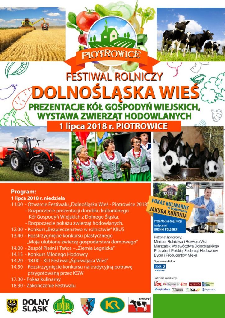 Pierwszego lipca oczy osób zainteresowanych wsią, rolnictwem i folklorem powinny być skierowane na Piotrowice w gminie Chojnów. Festiwal Dolnośląska Wieś to doskonała okazja, aby nie tylko poznać rolnicze trendy, ale także rozsmakować się w lokalnych specjałach i poznać bogactwo kulturowe wsi. Jak co roku impreza odbędzie się na terenie Kompleksu Parkowo – Pałacowego w Piotrowicach, gdzie hodowcy bydła, koni, królików, drobiu ozdobnego i gołębi będą prezentować swoje zwierzęta. Poza nimi, zwiedzający będą mogli obejrzeć stoiska promocyjno-handlowe przygotowane przez Koła Gospodyń Wiejskich, a komercyjni wystawcy zaprezentują rękodzieło artystyczne, środki ochrony roślin, pasze i artykuły do produkcji rolnej, ceramikę, wikliniarstwo, sadzonki drzew, krzewów i kwiatów, wyroby i przetwory lokalnych producentów. Patronat honorowy nad wydarzeniem objęli: minister rolnictwa i rozwoju wsi, marszałek województwa dolnośląskiego oraz prezydent Polskiej Federacji Hodowców Bydła i Producentów Mleka.