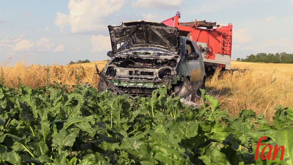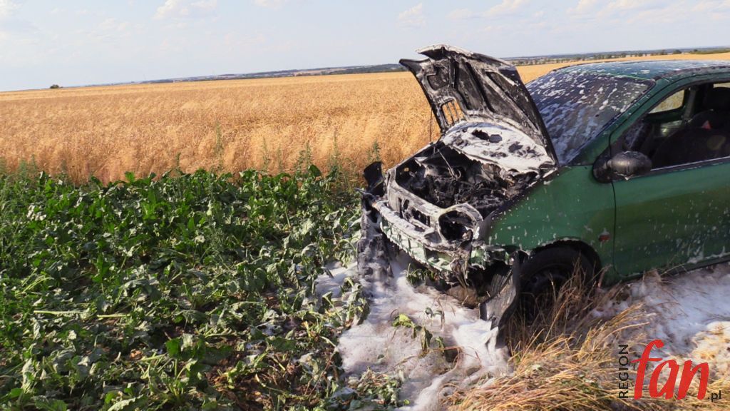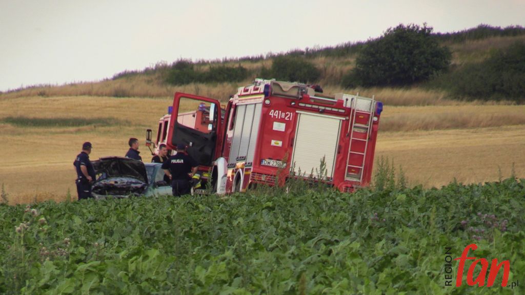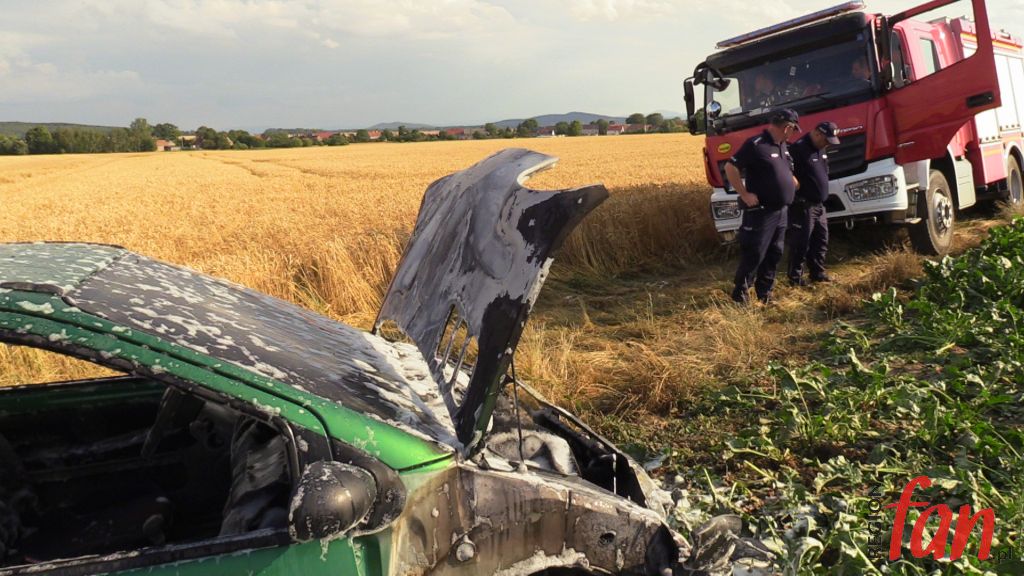 Jaworscy strażacy w niedzielę ok. godz. 17 zostali zadysponowani do płonącego auta osobowego. Stojący w ogniu pojazd porzucony był w polach, wśród dojrzewających zbóż w okolicy Marcinowic (gmina Mściwojów).