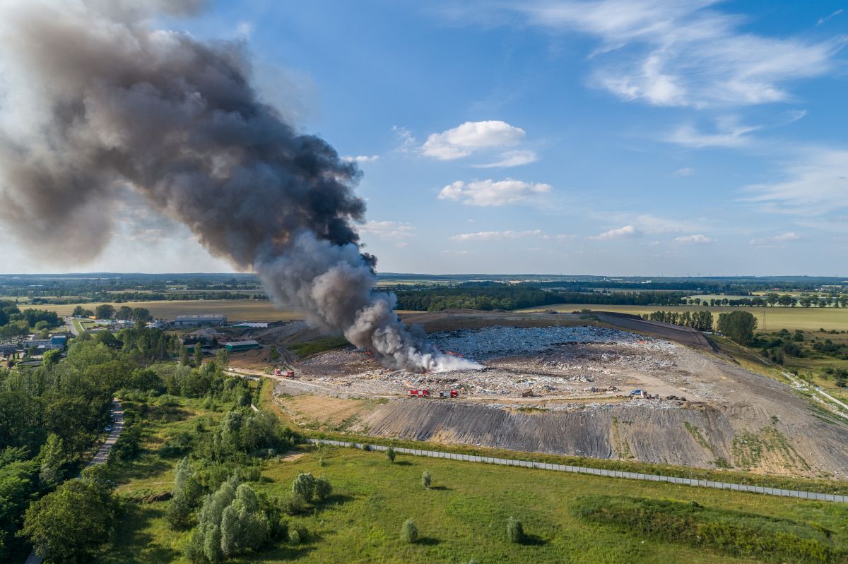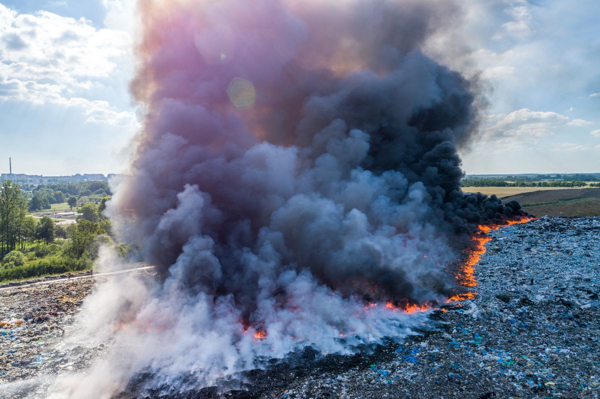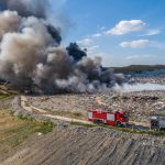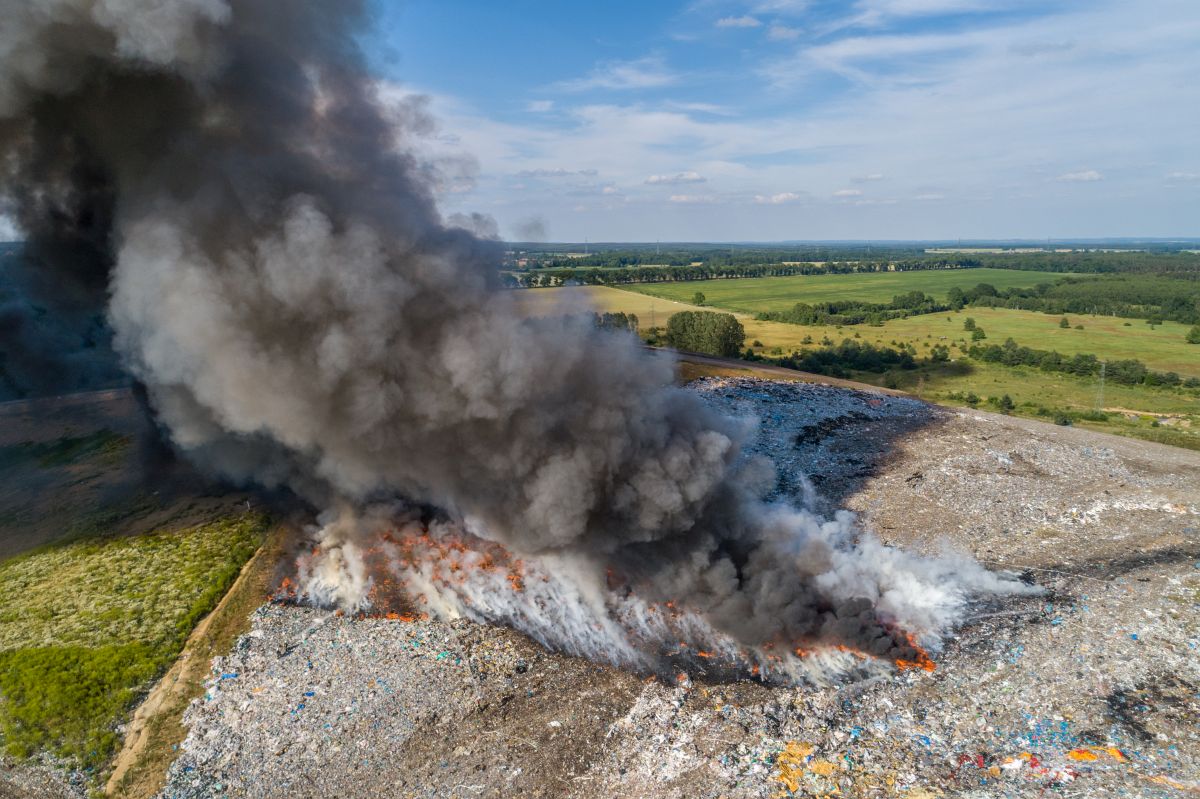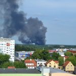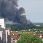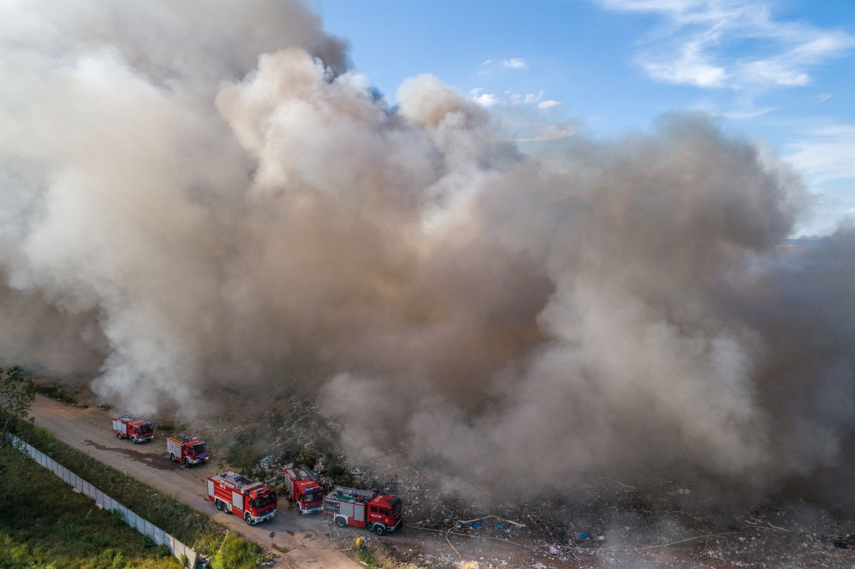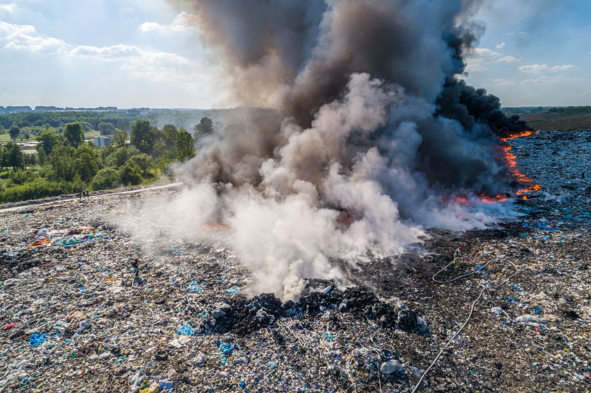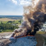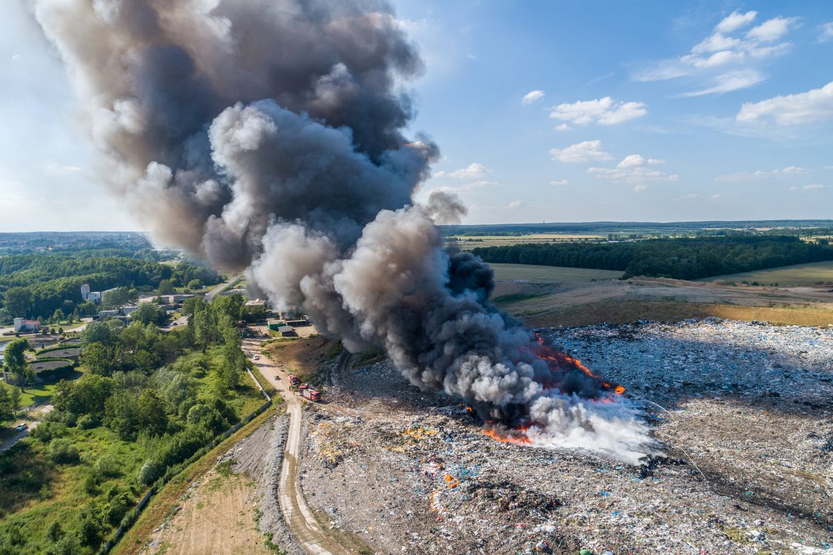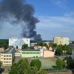 Gęsty słup czarnego dymu unosi się nad Lubinem. Płonie miejscowe składowisko odpadów.