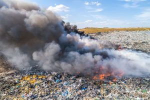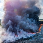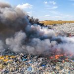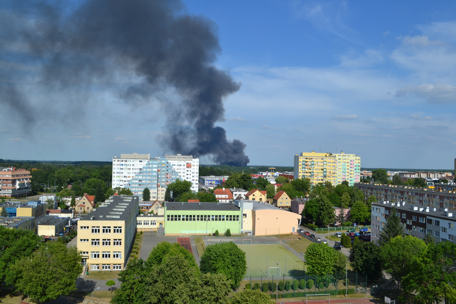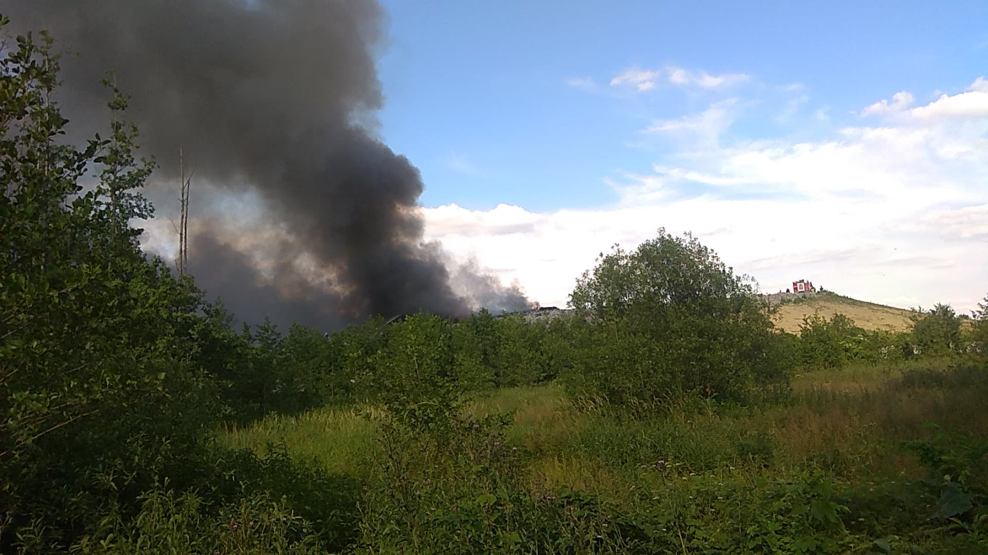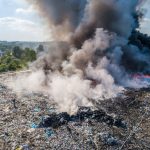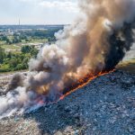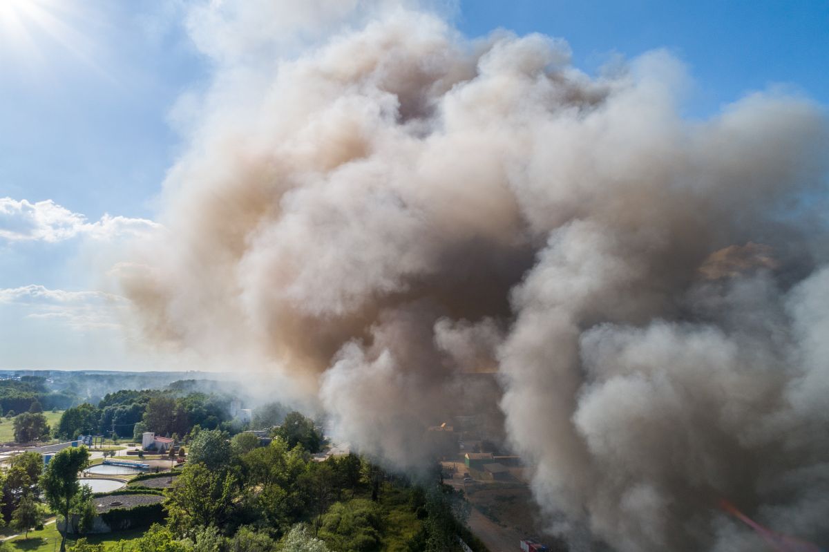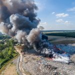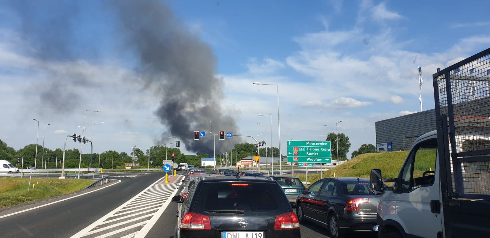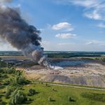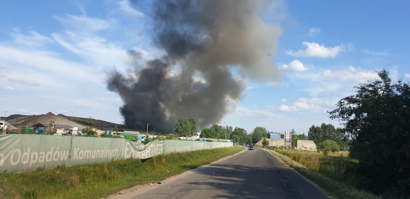 Gęsty słup czarnego dymu unosi się nad Lubinem. Płonie miejscowe składowisko odpadów.