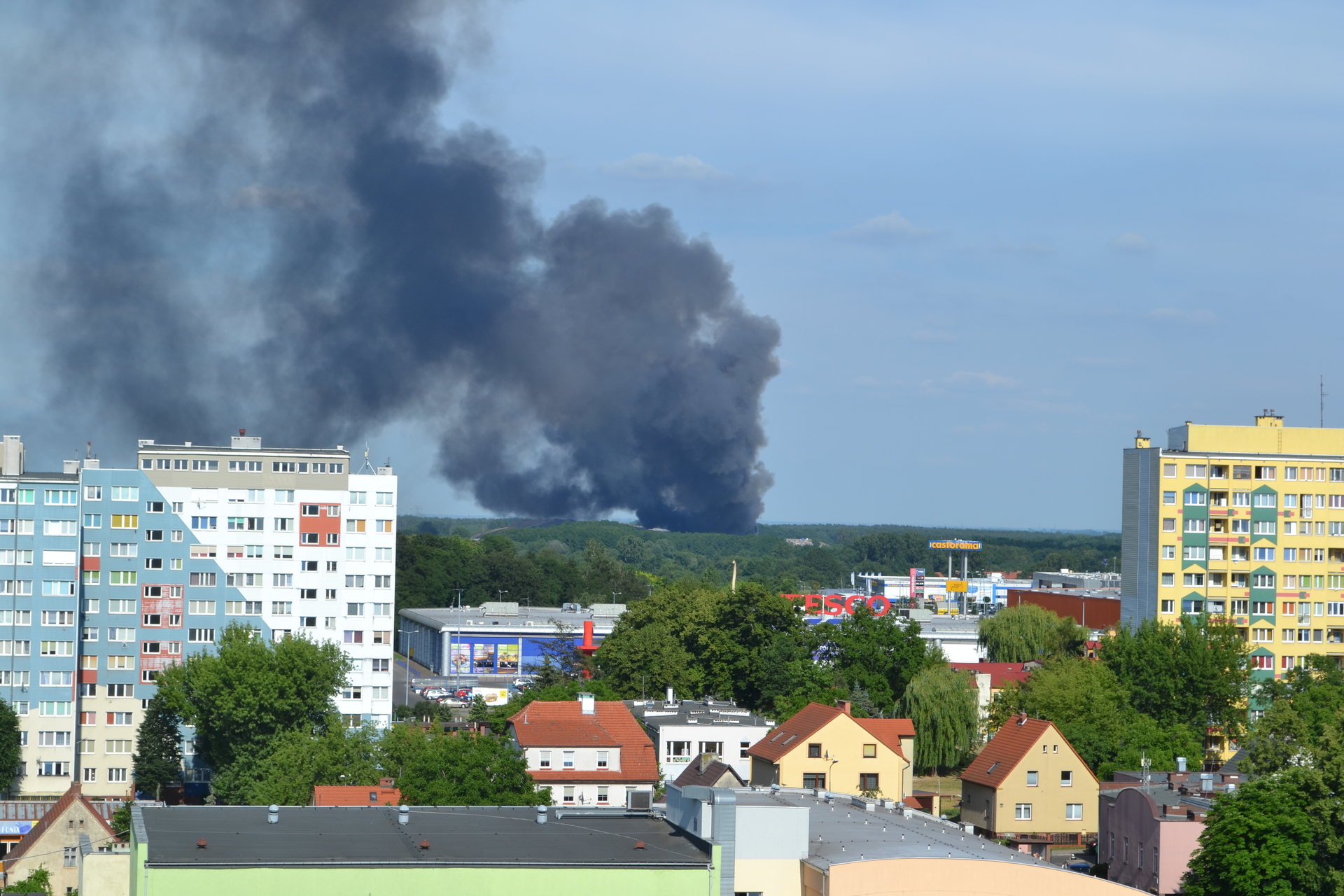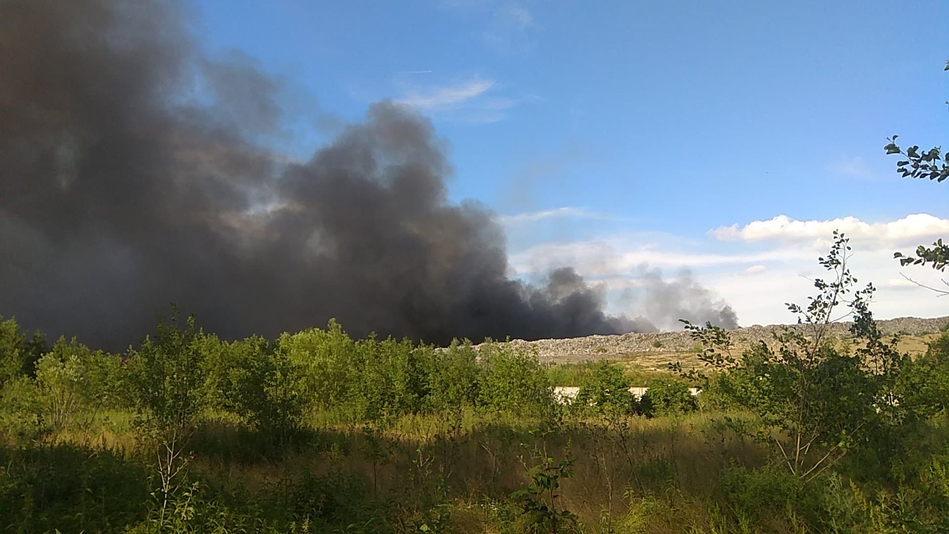 Pożar wybuchł kilkadziesiąt minut temu. Dym widoczny jest z odległości nawet kilkunastu kilometrów. Lubińska straż pożarna otrzymuje liczne zgłoszenia od mieszkańców zaniepokojonych, że znów pali się nielegalne składowisko w Kłopotowie. Jak poinformował nas oficer dyżurny PSP w Lubinie, tym razem ogień wybuchł na składowisku prowadzonym przez firmę Mundo.