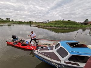 A pan Piotr zanocował w ścinawskim porcie na łódce pana Henia i wyruszył dalej. Relację z jego spływu można obserwować na Facebooku Odra Bug Bez Granic dla Maksa.