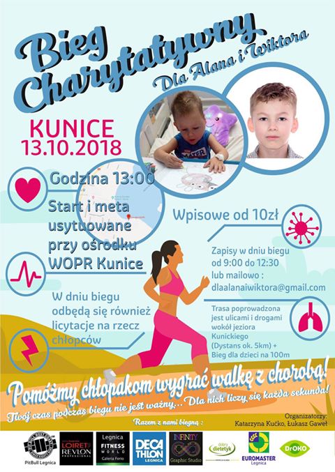 „Pomóżmy chłopakom wygrać walkę z chorobą! Twój czas podczas biegu nie jest ważny… Dla nich liczy się każda sekunda!” – apelują organizatorzy imprezy, Katarzyna Kućko i Łukasz Gaweł. I zachęcają do udziału w wydarzeniu wszystkich mieszkańców regionu, bez względu na wiek czy osiągnięcia sportowe.