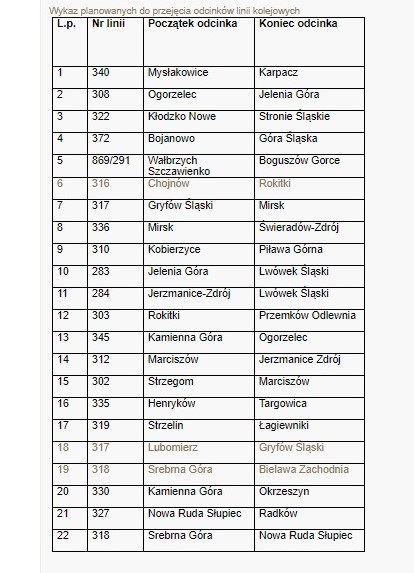 Remont opisywanego odcinka pochłonie blisko 200 mln zł netto. Odnowionych zostanie dziewięć stacji i przystanków, a dodatkowy przystanek powstanie w Lubinie, Obiekty te będą dobrze oświetlone, wyraźnie oznakowane i dopasowane do potrzeb osób niepełnosprawnych ruchowo. Inwestycja powinna zostać ukończona do końca przyszłego roku