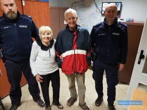 Do poszukiwań zaginionej pary natychmiast wysłano patrol policji z komisariatu w Bolkowie. Po prawie dwóch godzinach mundurowi odnaleźli zaginionych za miejscowością Sady Górne. Małżeństwo siedziało w środku pojazdu, który stał unieruchomiony w błocie. Para była zziębnięta, zdezorientowana i wystraszona. Funkcjonariusze ustalili, że starsza pani choruje na serce i pilnie musi zażyć leki. Ze wględu na swój stan zdrowia oraz trudne warunki atmosferyczne kobieta nie była w stanie dojść o własnych siłach do oddalonego o kilkaset metrów radiowozu, dlatego policjanci zanieśli ja tam na rękach.