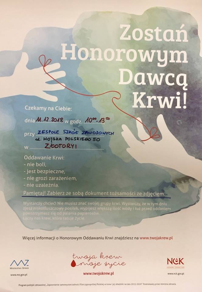 Zbiórka odbędzie się w miejscowym Zespole Szkół Zawodowych im. mjra H. Sucharskiego i potrwa ona przez trzy godziny (od godz. 10 do 13)