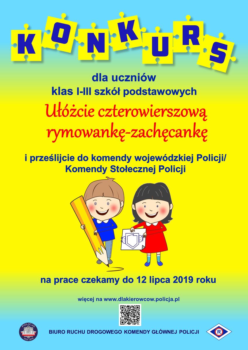 Prace należy przesłać na adres Komendy Wojewódzkiej Policji we Wrocławiu lub Komendy Stołecznej Policji, z dopiskiem „Konkurs na rymowankę”.