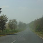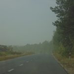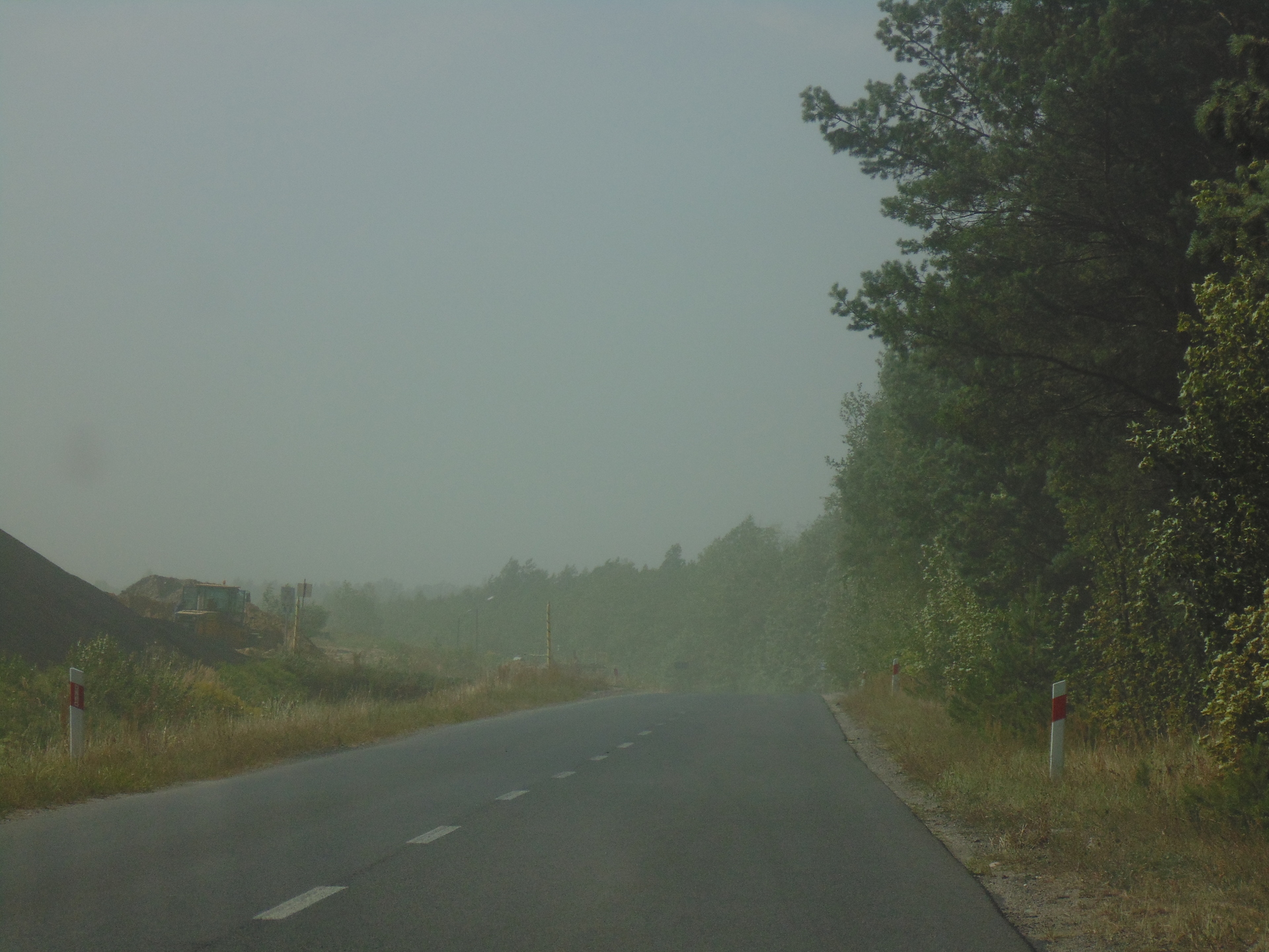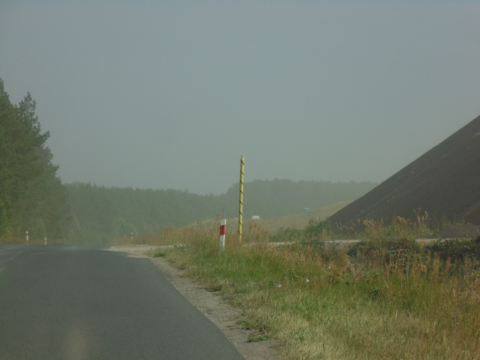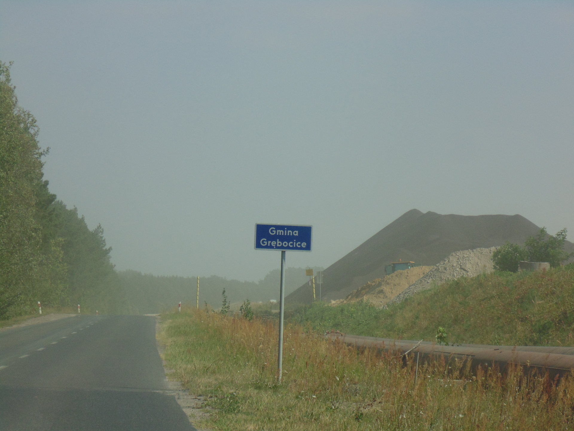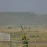 To, co widać na zdjęciach nie jest mgłą, ale efektem pylenia ze zbiornika odpadów poflotacyjnych Żelazny Most, należącego do KGHM. Przesuwającą lekką „chmurę” piasku zauważyliśmy wczoraj w godzinach popołudniowych za Tarnówkiem, gmina Polkowice, jadąc w kierunku Rudnej. Było słonecznie, ale dość wietrznie.