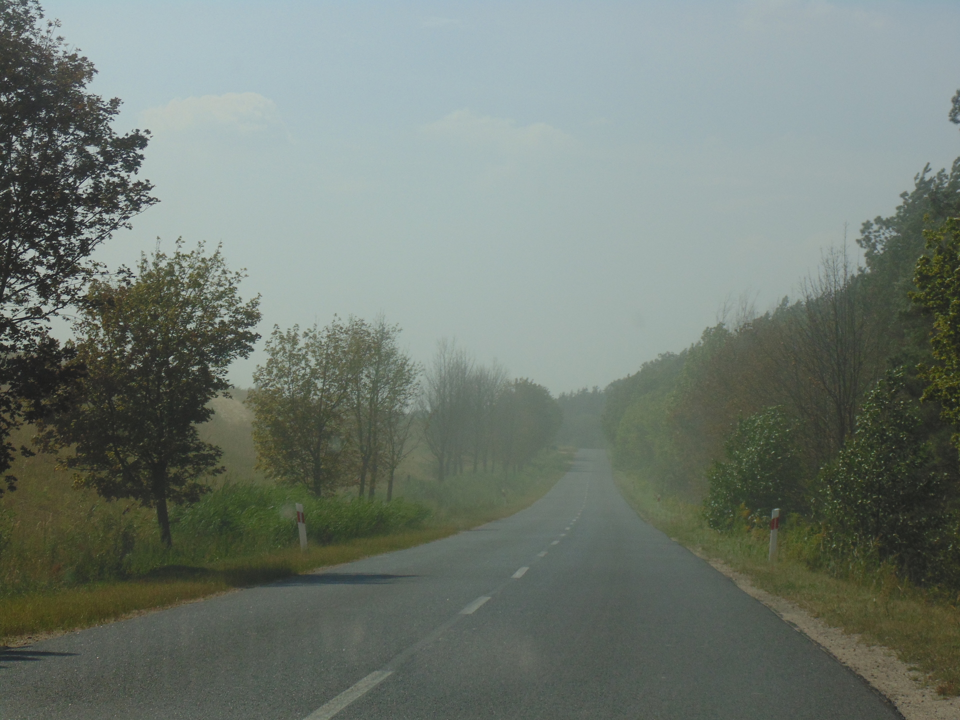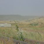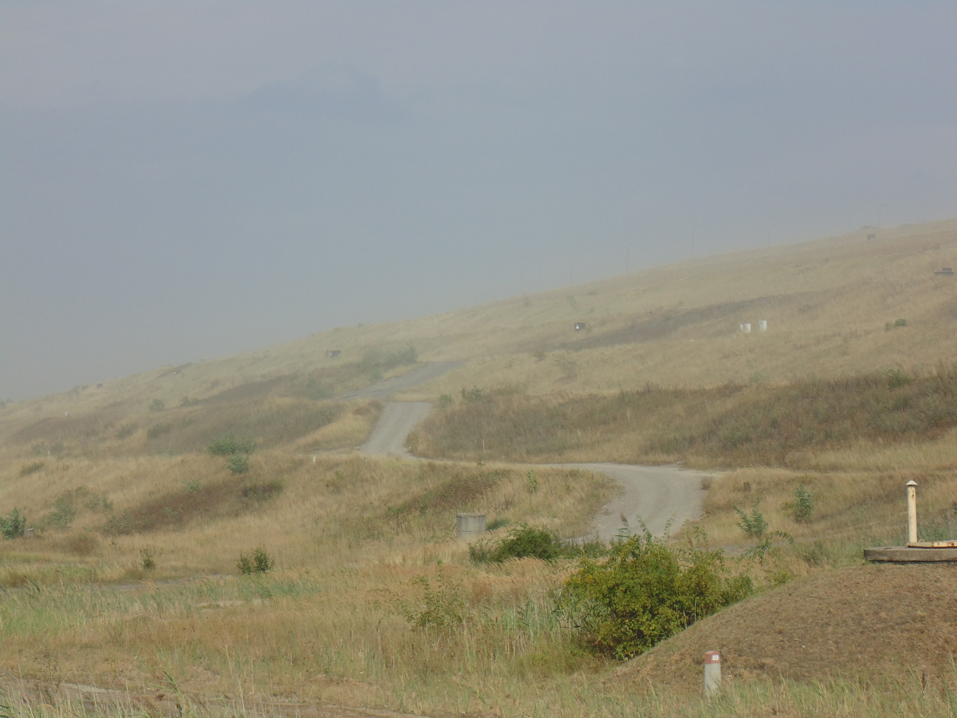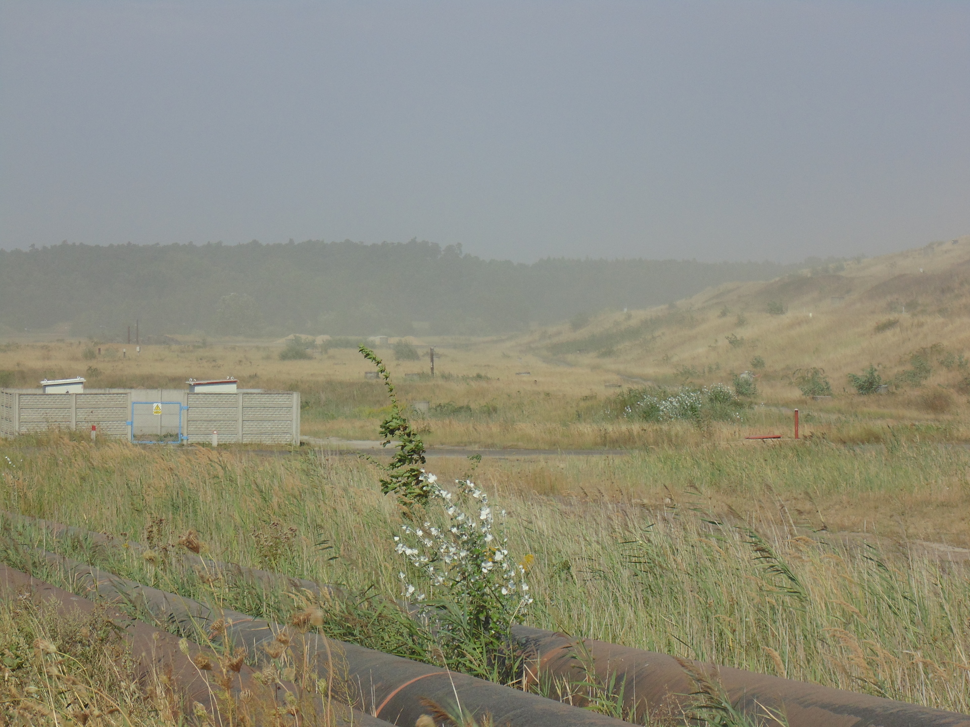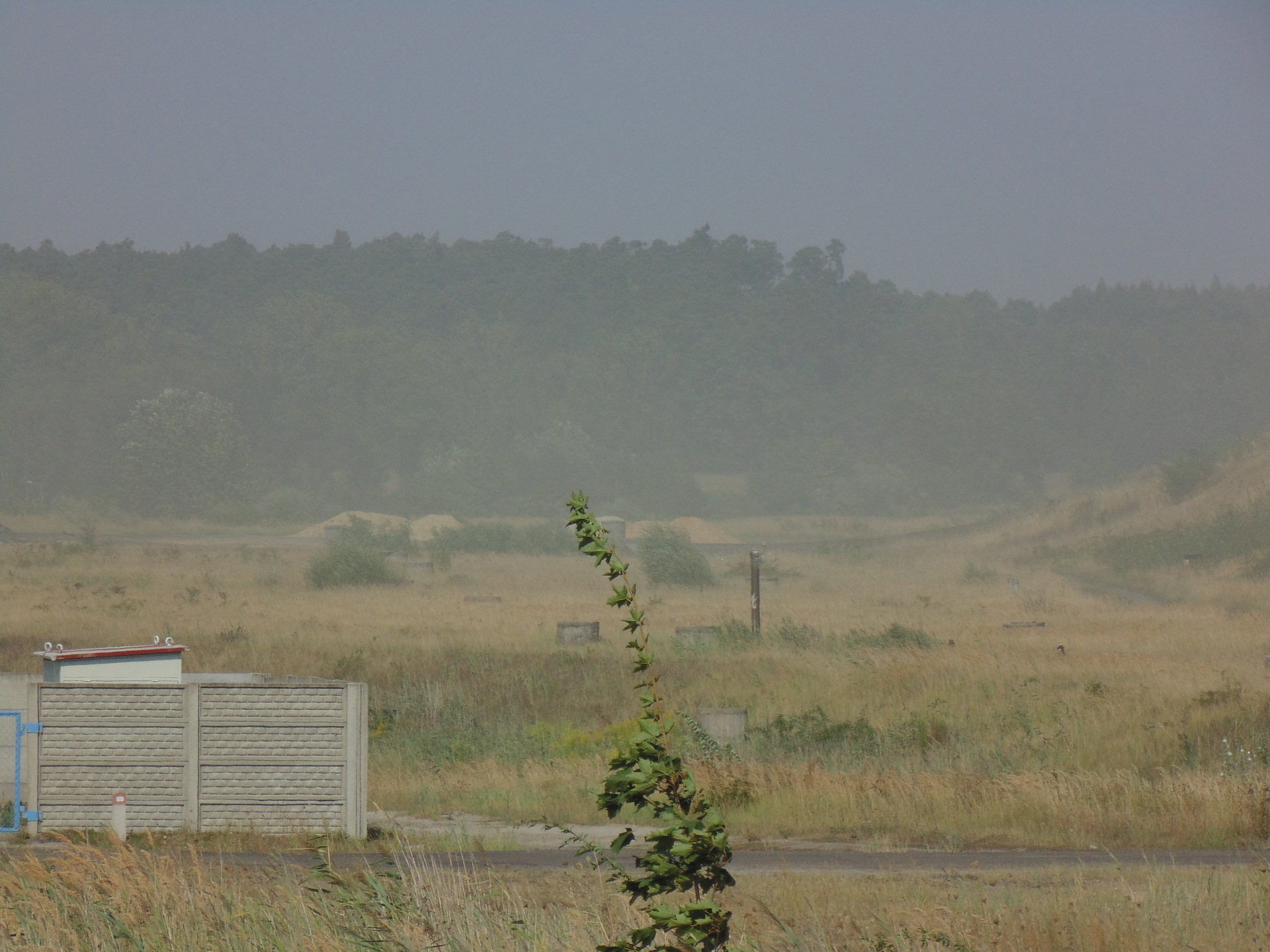 To, co widać na zdjęciach nie jest mgłą, ale efektem pylenia ze zbiornika odpadów poflotacyjnych Żelazny Most, należącego do KGHM. Przesuwającą lekką „chmurę” piasku zauważyliśmy wczoraj w godzinach popołudniowych za Tarnówkiem, gmina Polkowice, jadąc w kierunku Rudnej. Było słonecznie, ale dość wietrznie.