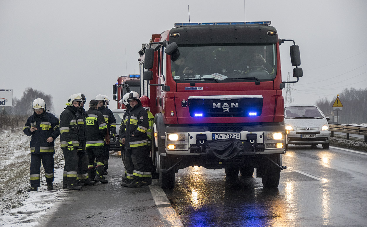 Jak nam powiedział dyżurny polkowickiej straży pożarnej, osobówką jechały cztery osoby. Jedna z nich została poszkodowana, ale nie wymagała hospitalizacji. Nie było też utrudnień w ruchu. Służby apelują o ostrożność – po opadach śniegu panują trudne warunki drogowe.