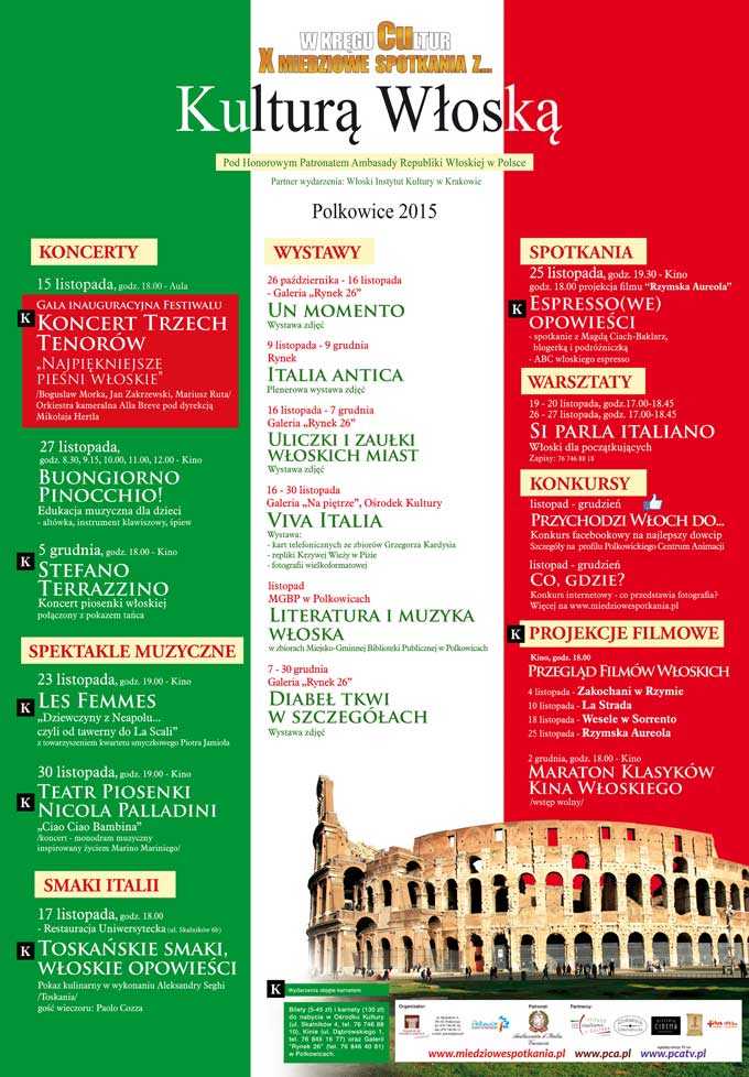 Kolejna odsłona Miedziowych Spotkań z Kulturą Włoską nastąpi 5 grudnia. O godz. 18 w auli Zespołu Szkół Stefano Terrazzino wystąpi w koncercie piosenki włoskiej połączonym z pokazem tańca.