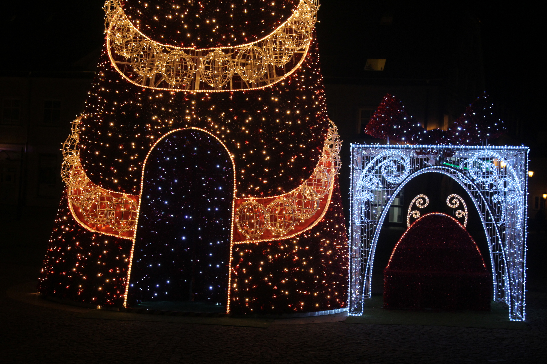– Można wejść do środka, będzie ładna pamiątka – powiedział nam jeden z mieszkańców miasta. – A obok choinki w Rynku jest też ławeczka w oświetlonej oprawie. Dzieci są zachwycone – dodał. – Tylko śniegu brakuje.