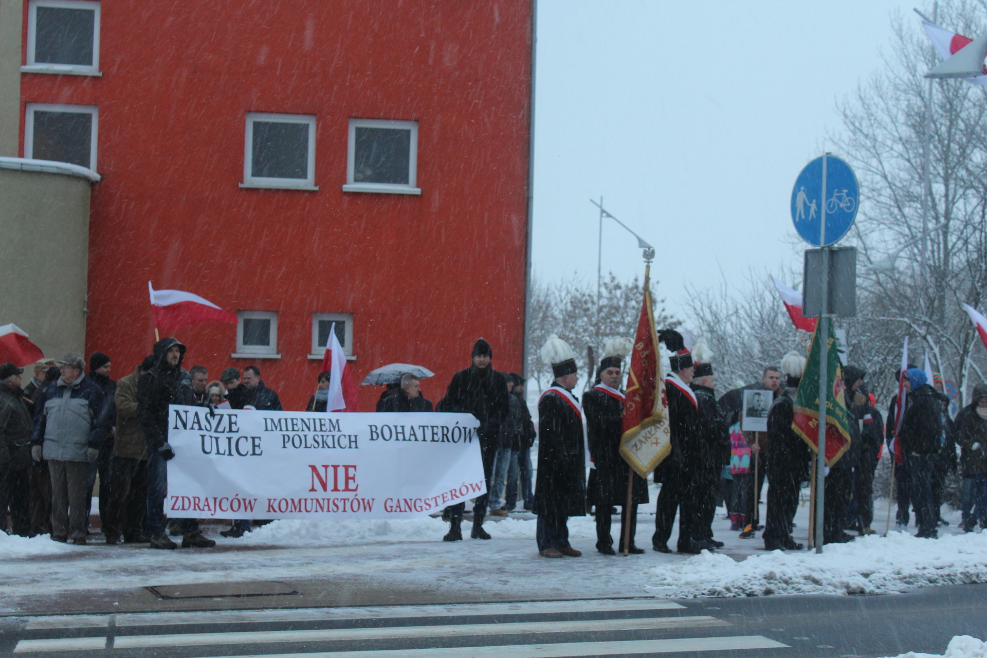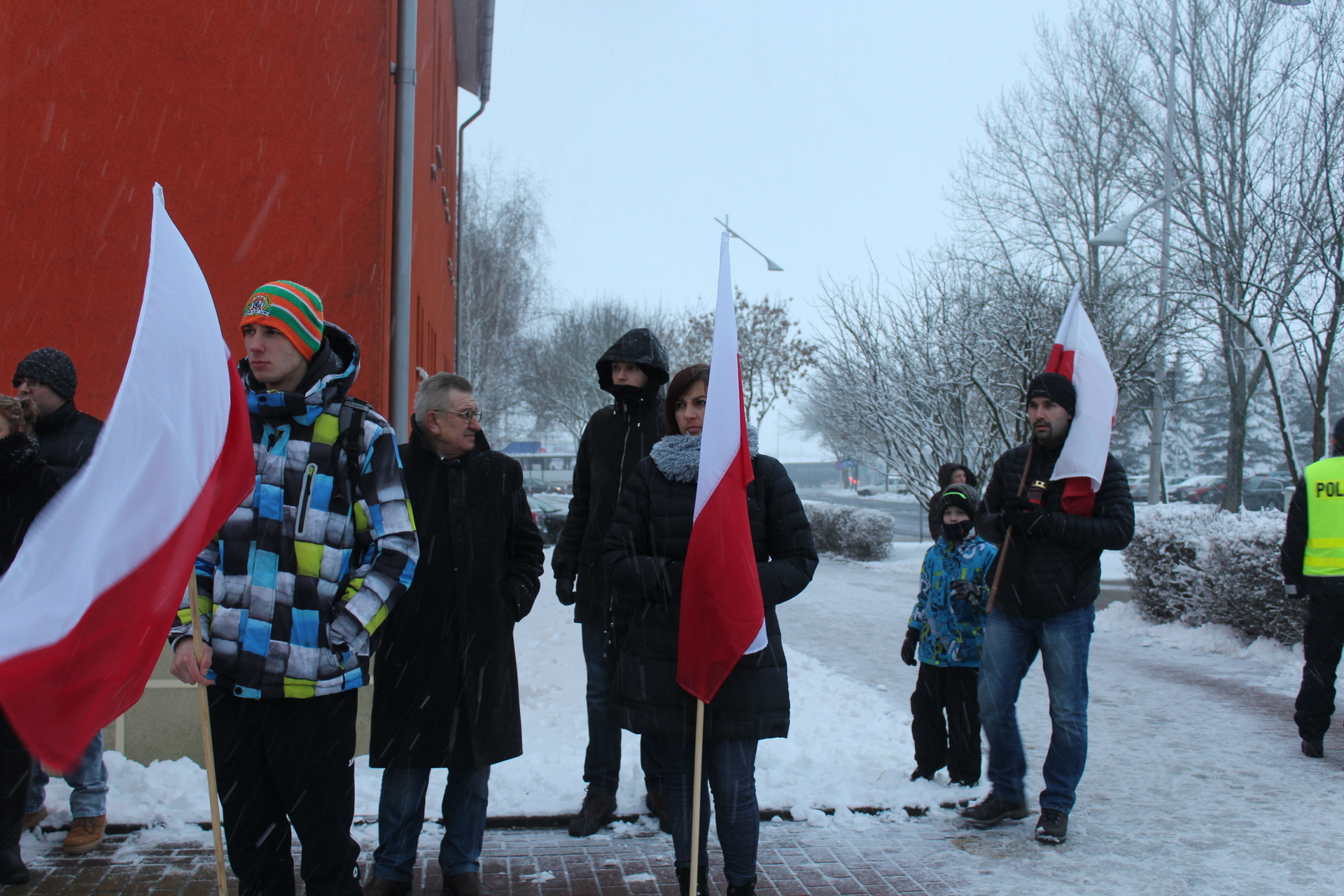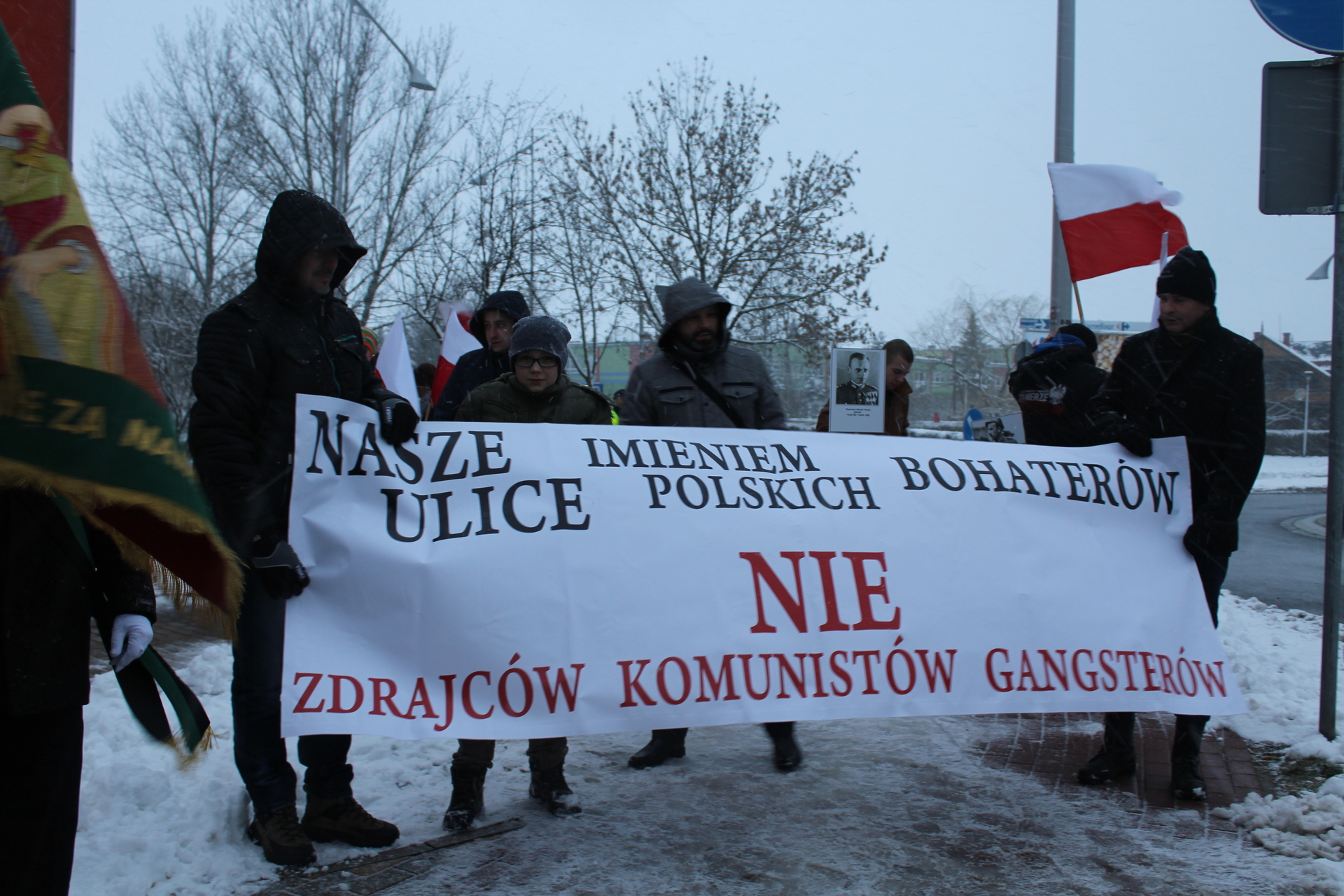 IMG_0982Grupa mieszkańców gminy Polkowice, z flagami, sztandarem i transparentami, obchodziła we wtorkowe popołudnie, 1 marca, Narodowy Dzień Pamięci „Żołnierzy Wyklętych”.