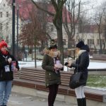 Wolontariusze przemierzają ulice miasta rozdając czerwone serduszka.