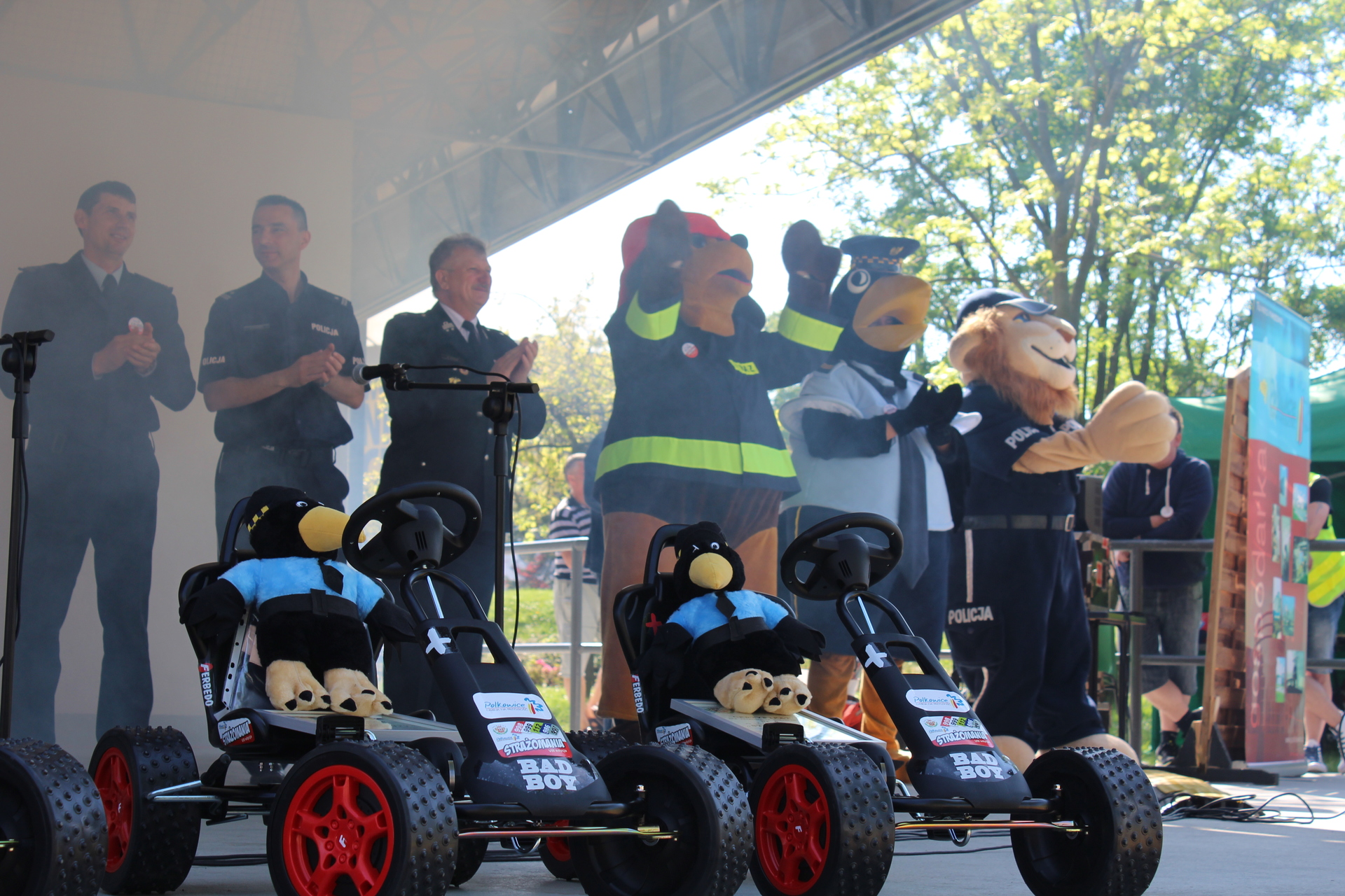 Gośćmi specjalnymi imprezy były wielkie maskotki: policyjny Komisarz Lew, Kruk ze Straży Miejskiej i strażacki Żarek.