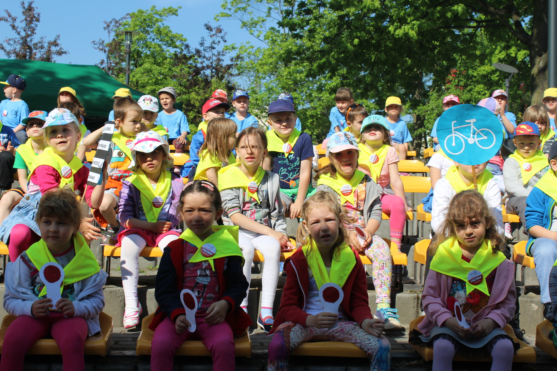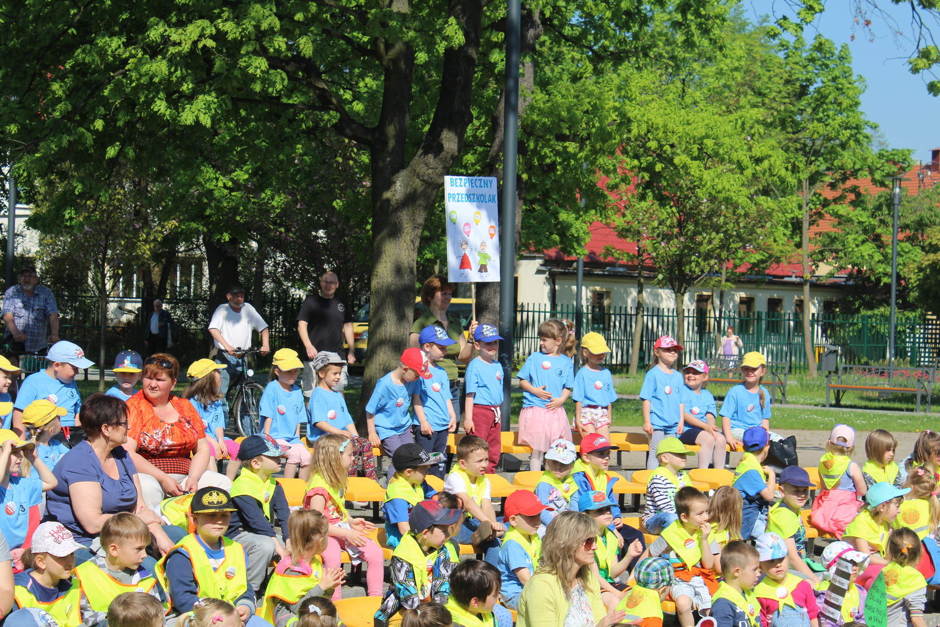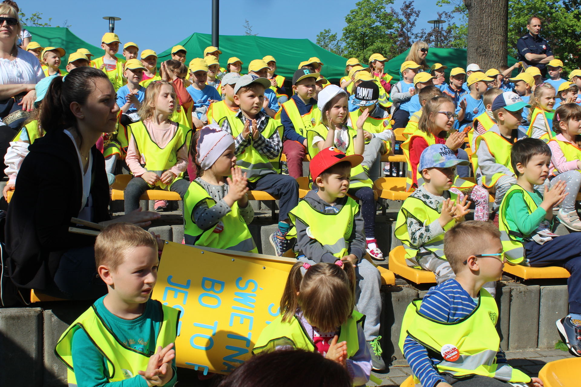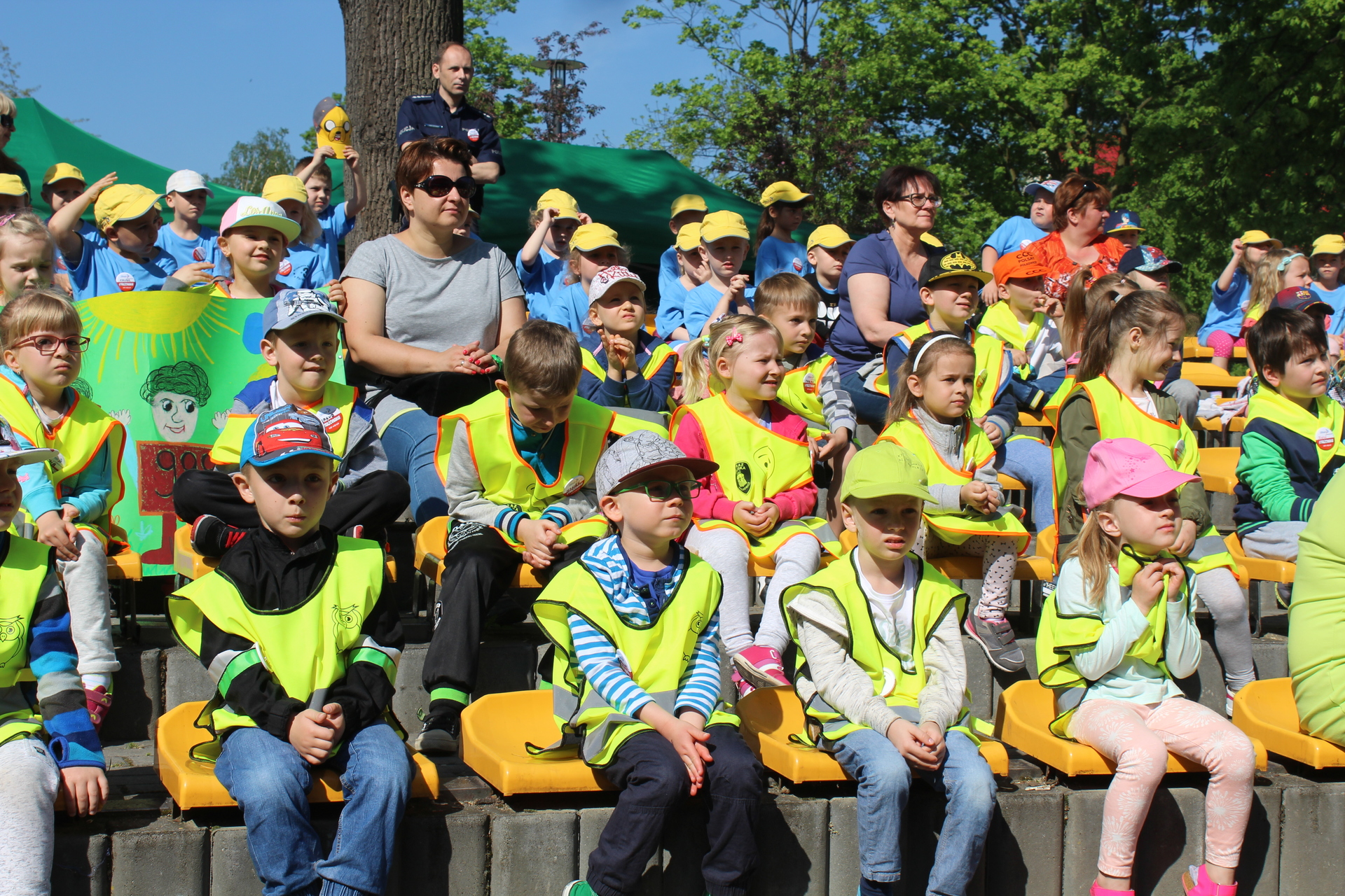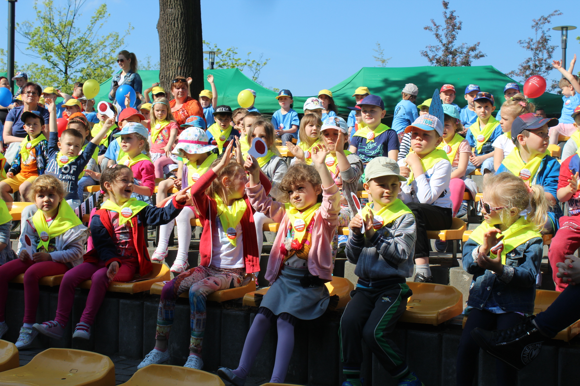 Przedszkolaki świetnie się bawiły, zarówno na scenie amfiteatru, jak i poza nią, zwłaszcza że pogoda dopisała. Zapytane o zasady bezpieczeństwa chórem odpowiadały: – Trzeba rozglądać się przed przejściem po pasach, nie można wpuszczać obcych do domu i rozmawiać z nimi na ulicy.