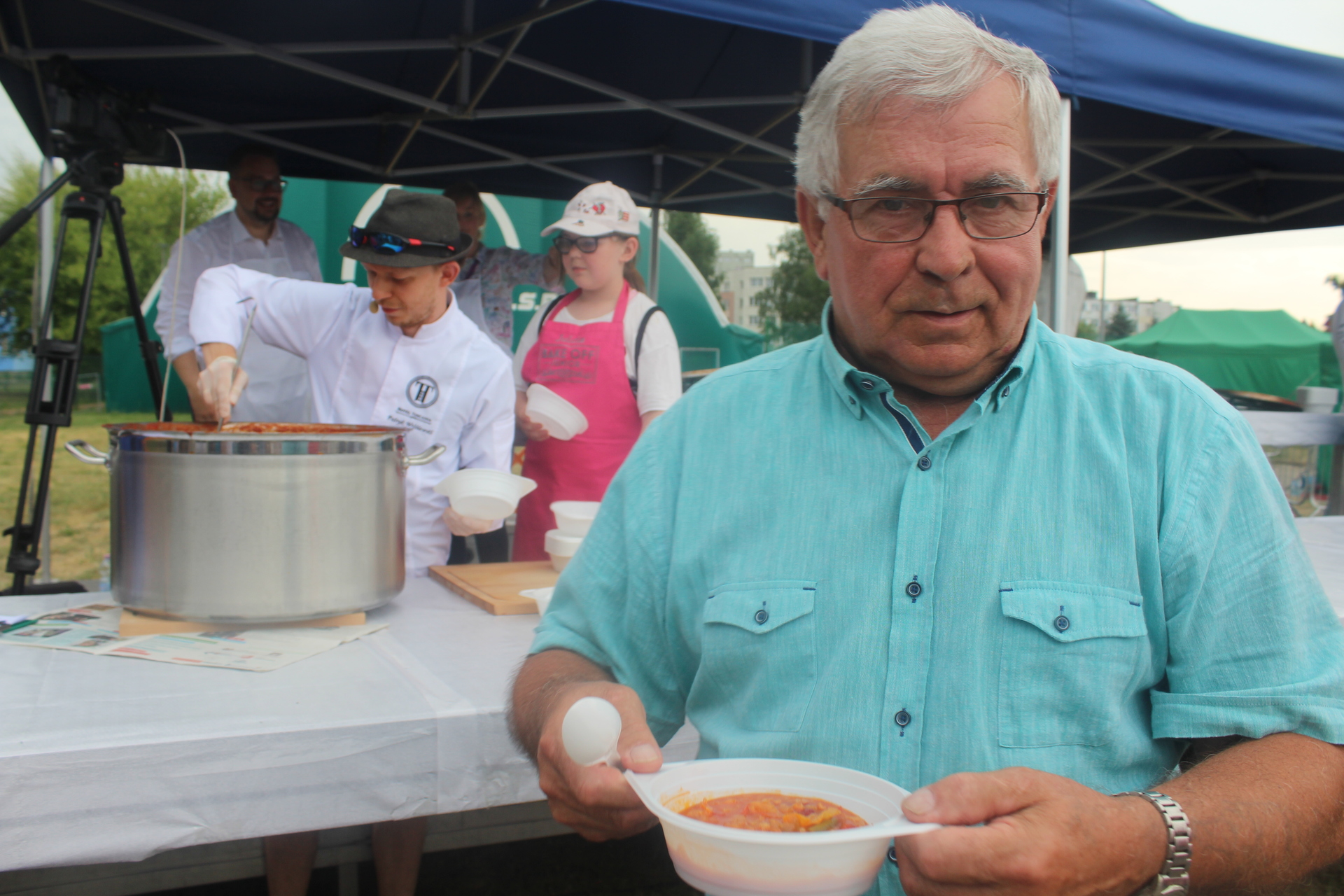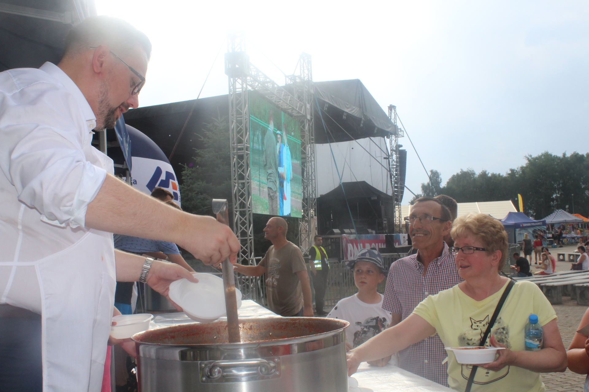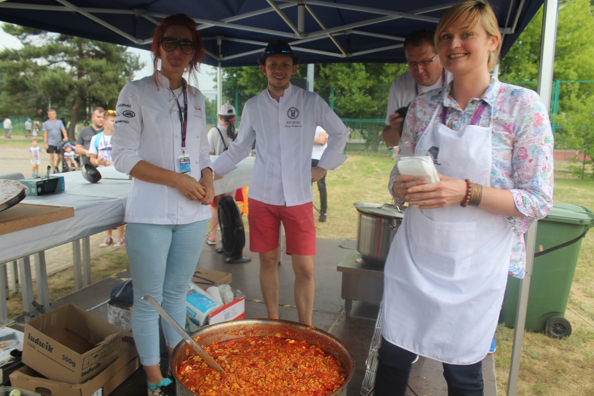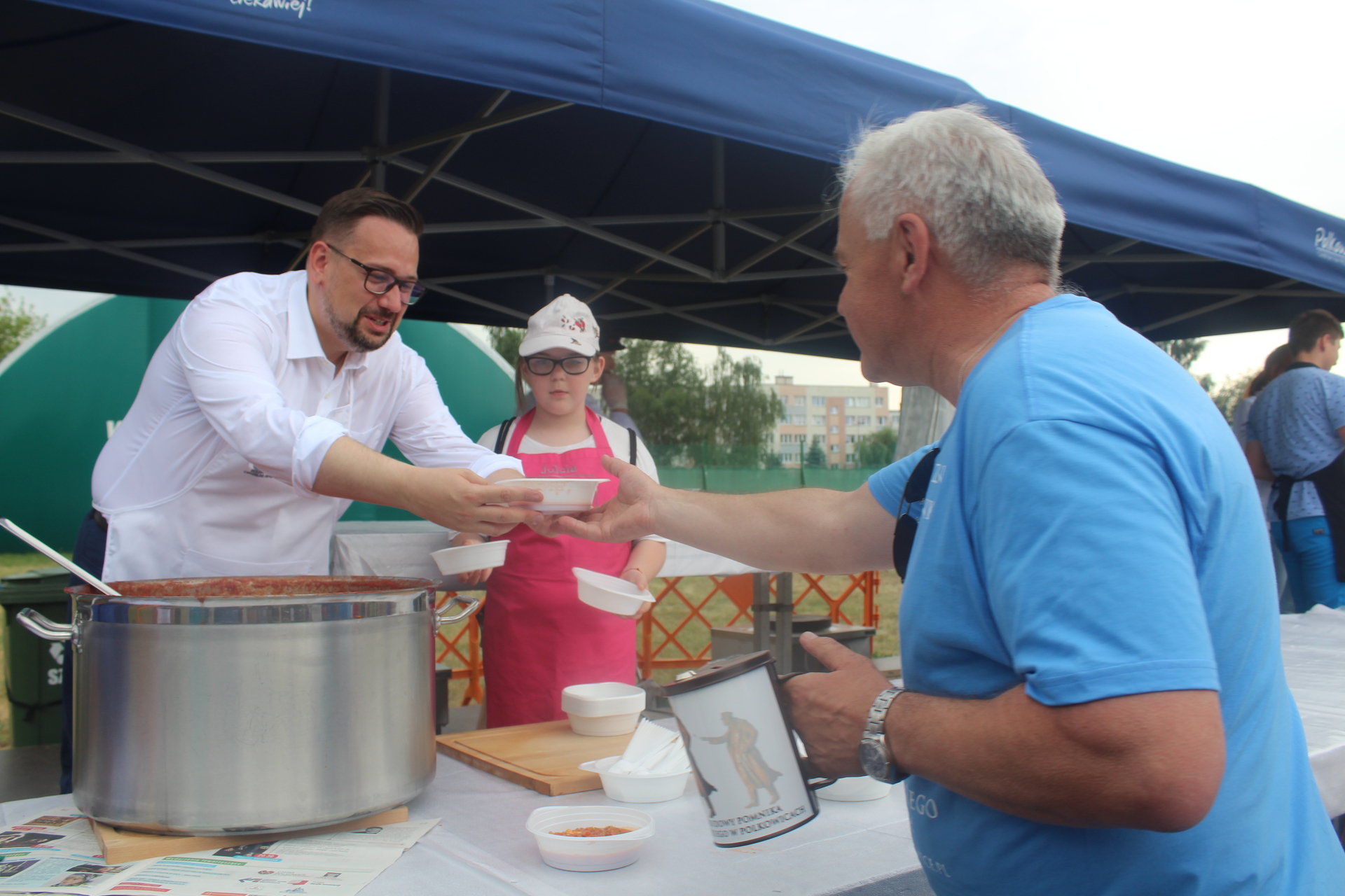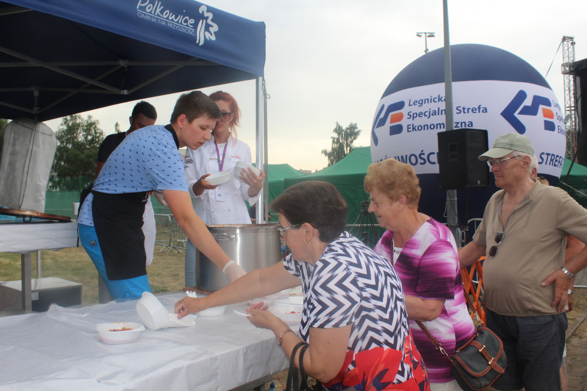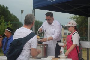 Wśród kucharzy byli burmistrz gminy Łukasz Puźniecki, który potem nalewał zupę do talerzy (jak wyznał, kroił cebulę i łzy popłynęły, ale jak spróbował, to bardzo mu smakowała), Ewelina Stanek, uczestniczka II edycji programu „Masterchef” oraz Julia Tarach, polkowiczanka, uczestniczka kulinarnego programu „Bake Off Junior”. Chętnych do spróbowania oryginalnej potrawy nie brakowało, za datek do puszki na leczenie chorych chłopców Jakuba i Michałka. Niektórzy brali nawet dokładkę.