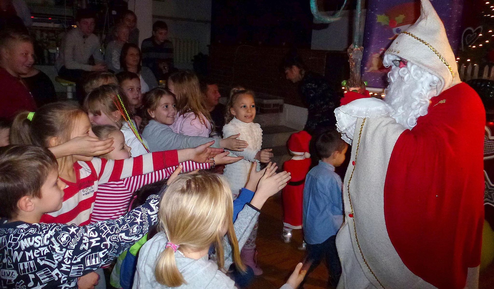 Dzień wcześniej św. Mikołaj zajechał do auli Forum polkowickiego Zespołu Szkół, gdzie czekały już na niego dzieci ze wszystkich miejscowości w gminie. Zanim się pojawił maluchy mogły odwiedzić gabinet krzywych zwierciadeł.