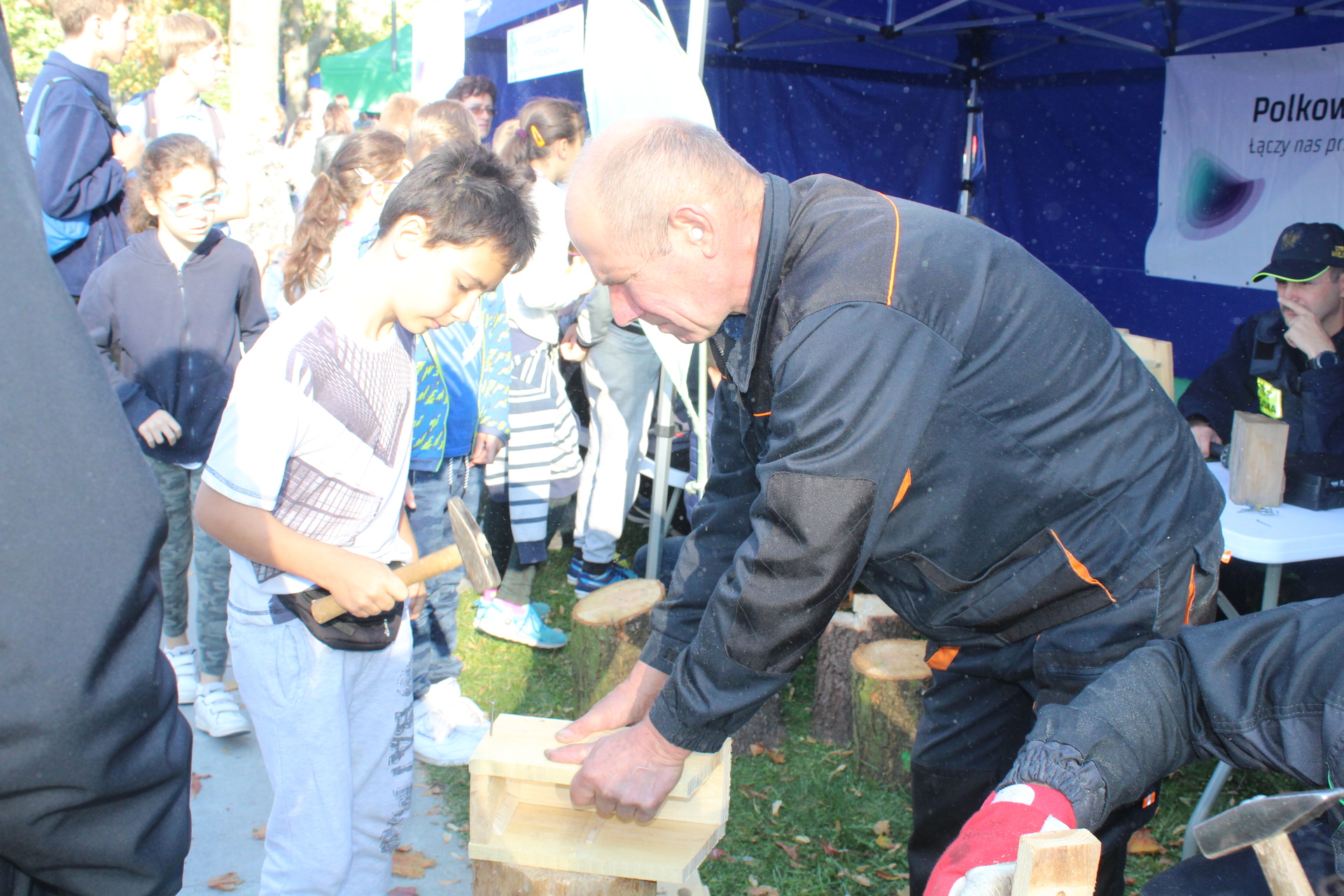 Najmłodsi chętnie też gromadzili się przy stoisku, gdzie można było otrzymać budkę lęgową dla ptaków, po wbiciu gwoździa, pod okiem fachowca.