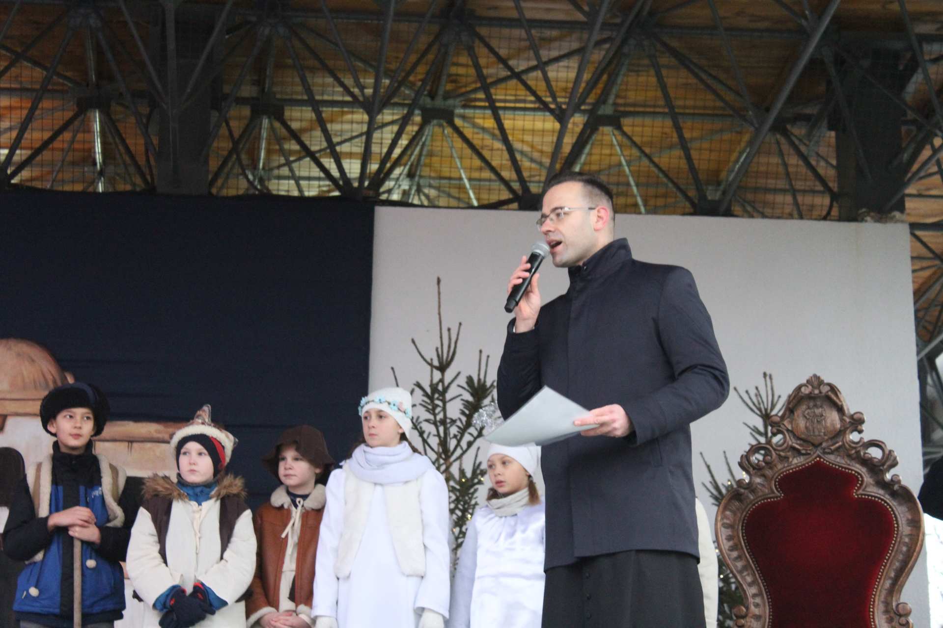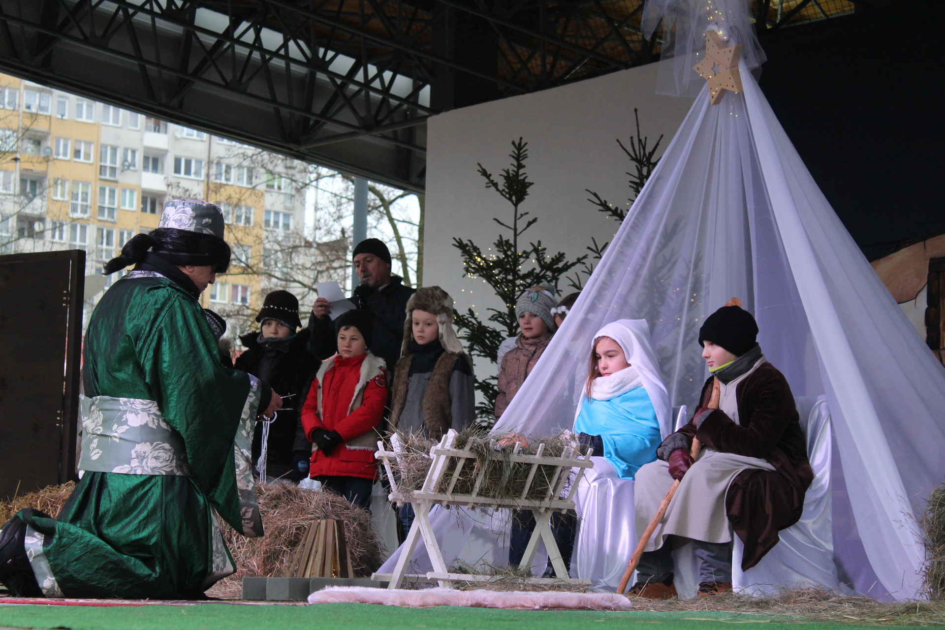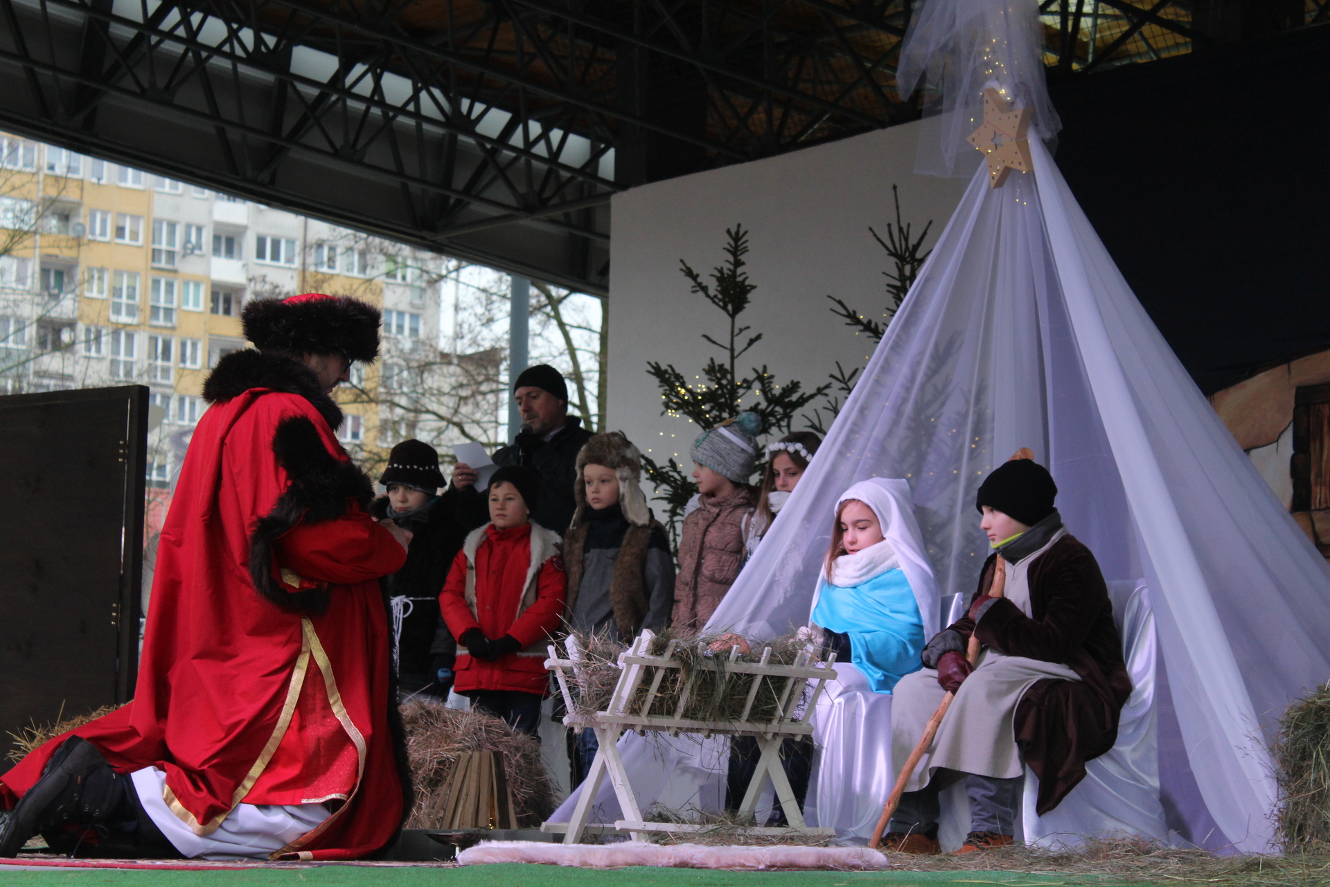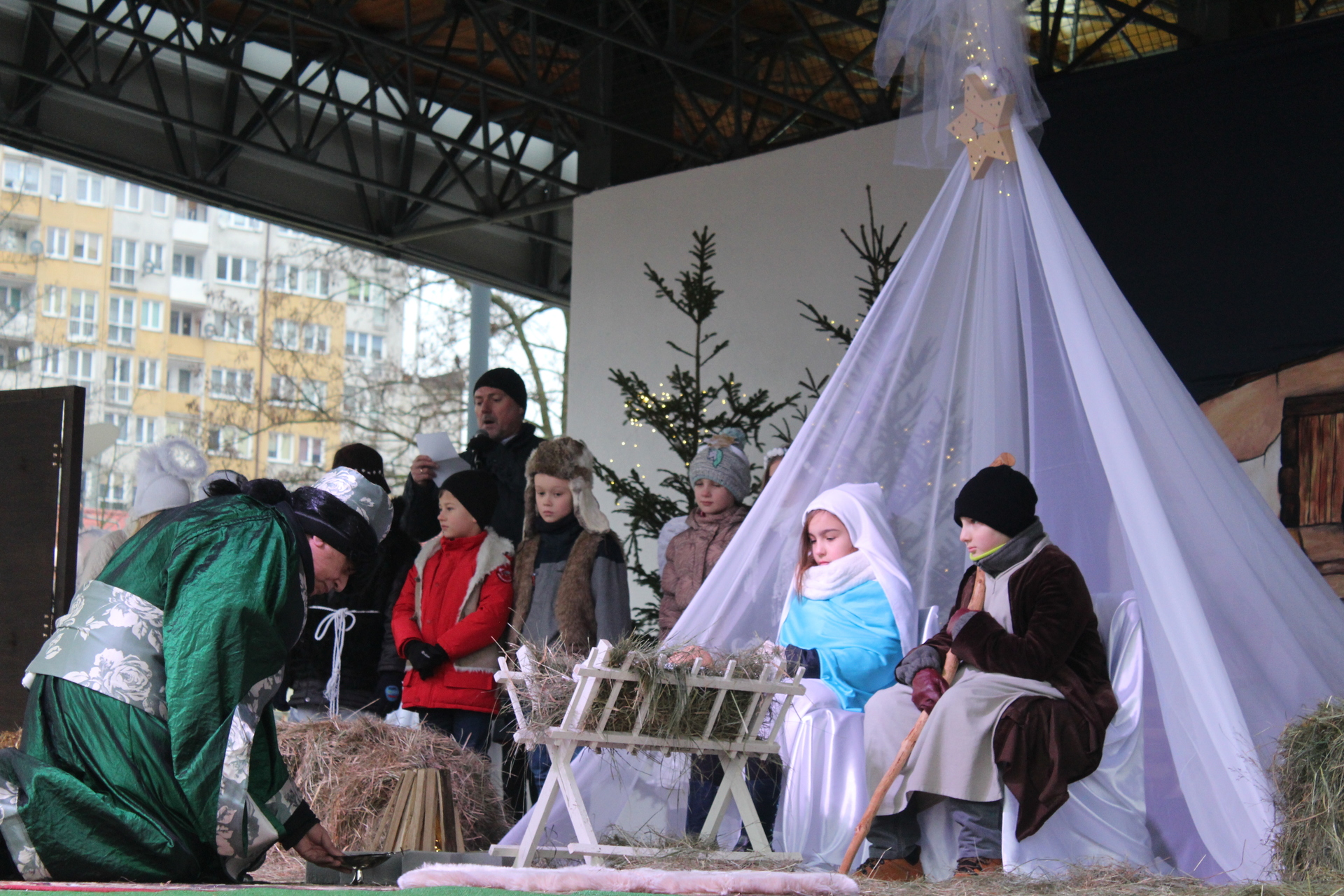 Przy szopce w Rynku lektor odczytał opowieść opartą na objawieniach błogosławionej Katarzyny Emmerich, żyjącej na przełomie XVIII/XIX wieku niemieckiej mistyczki, stygmatyczki i wizjonerki Kościoła katolickiego, a na scenie amfiteatru uczniowie szkoły katolickiej wystawili przepiękne jasełka.