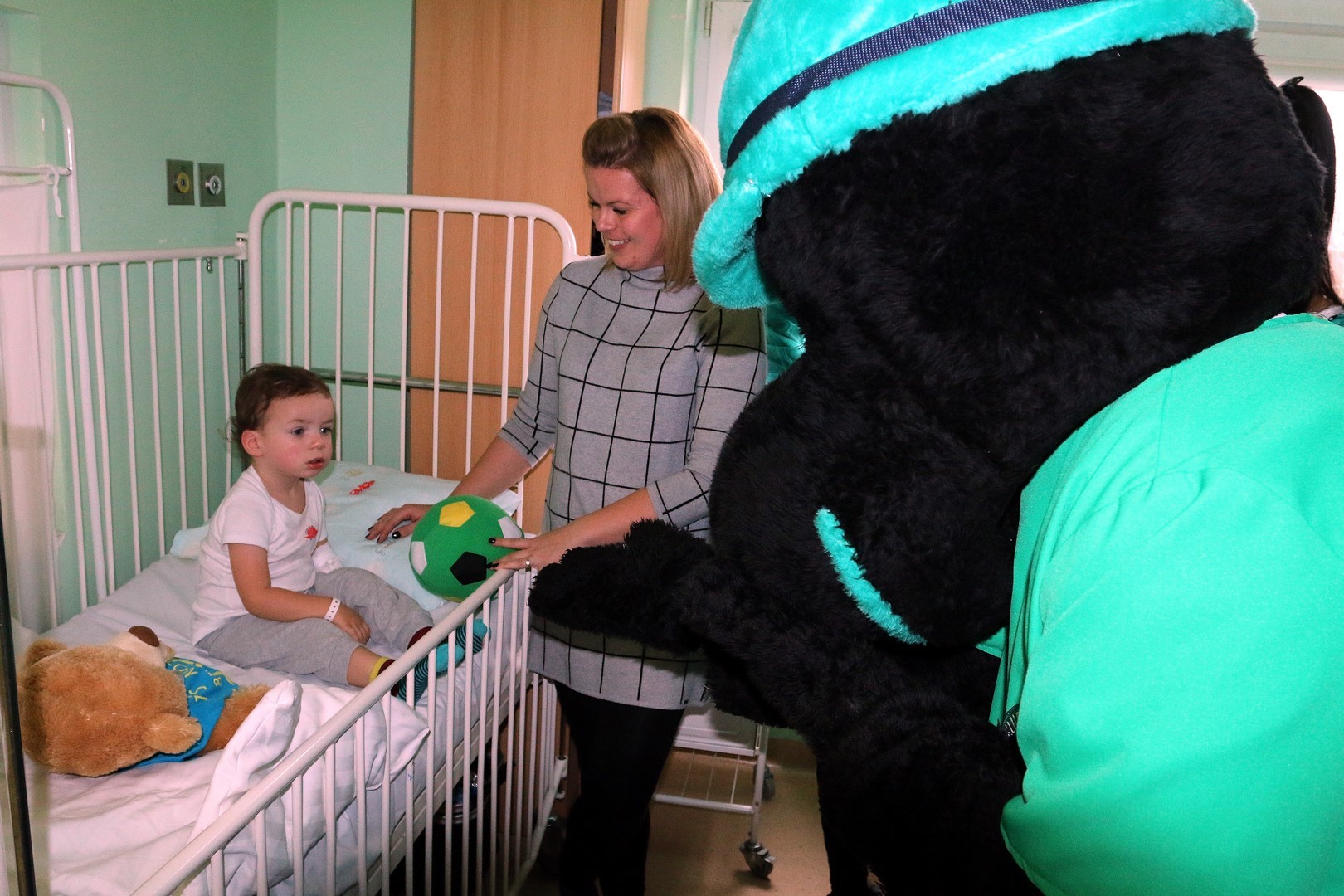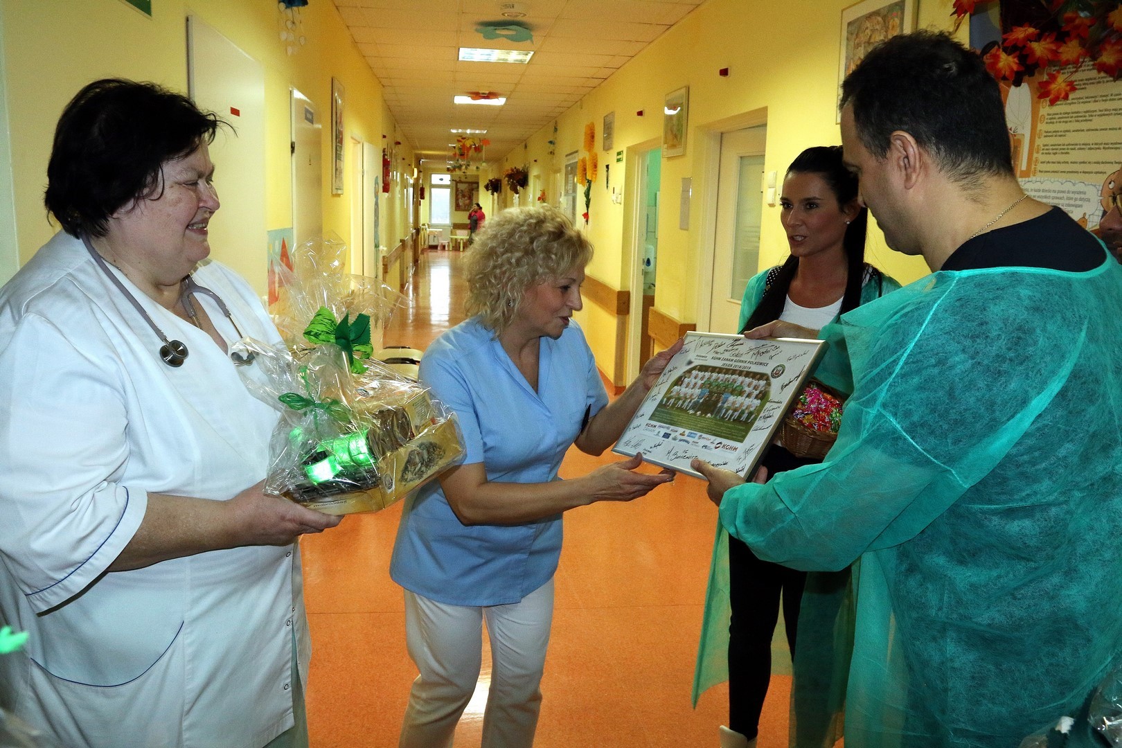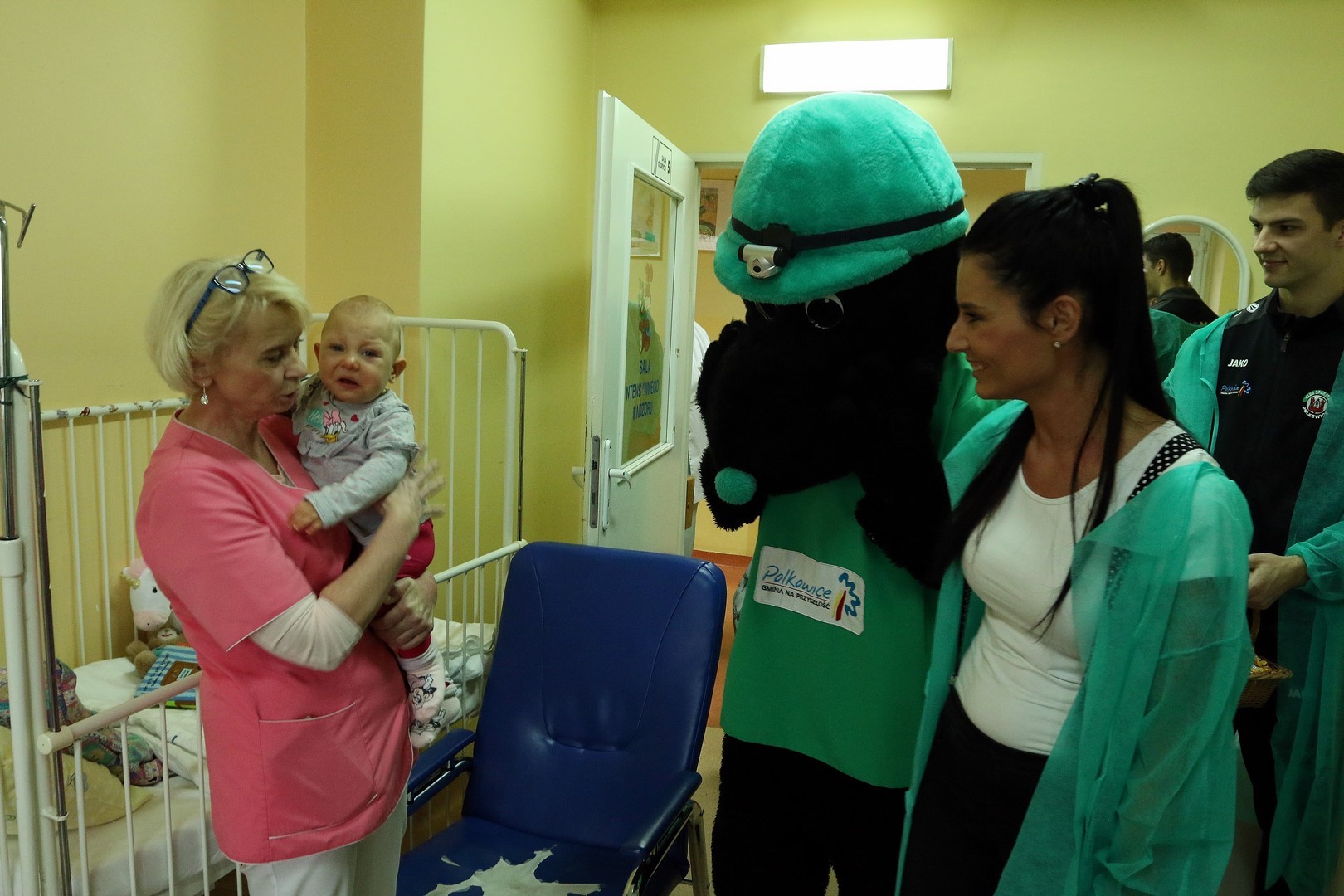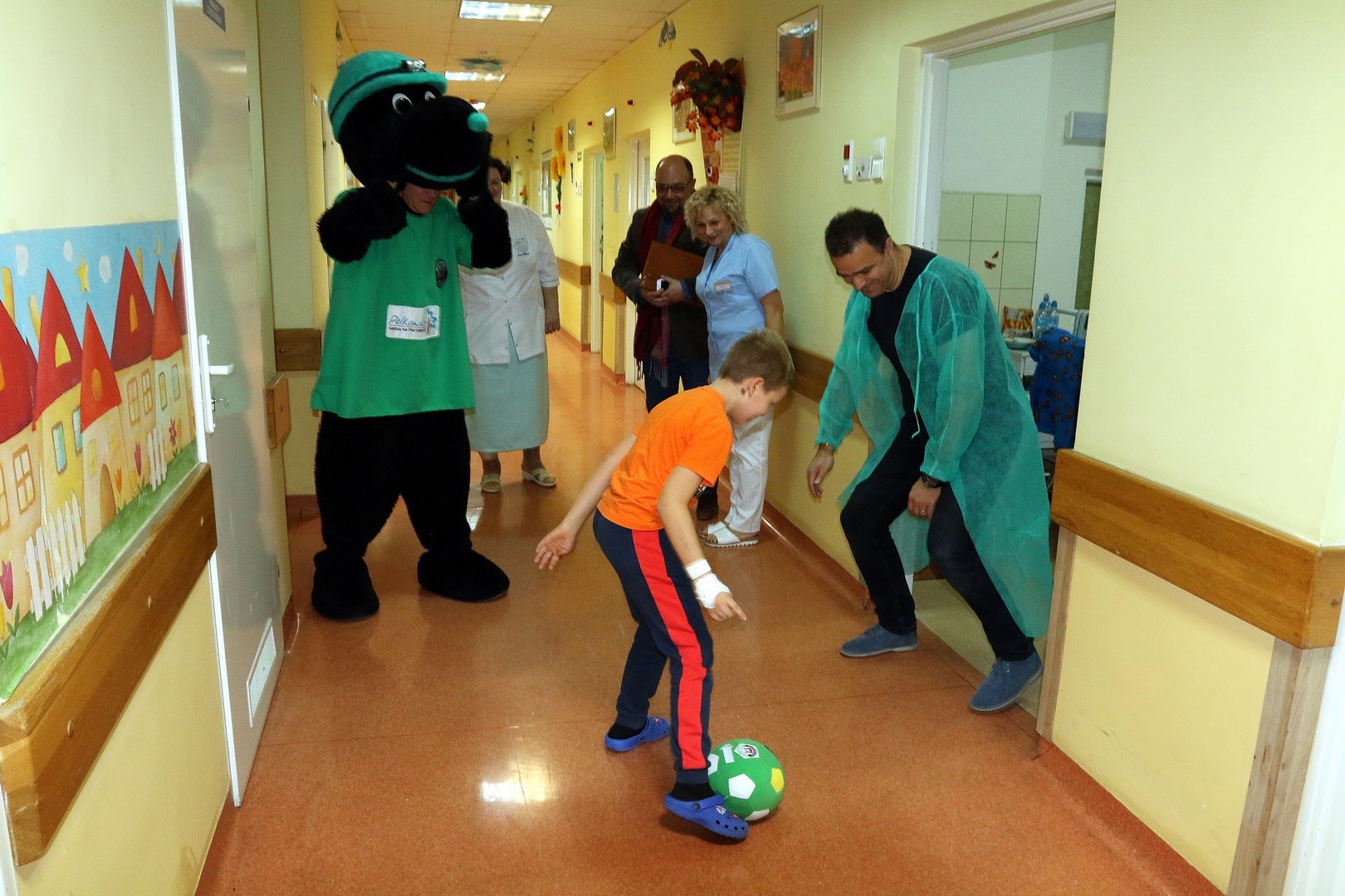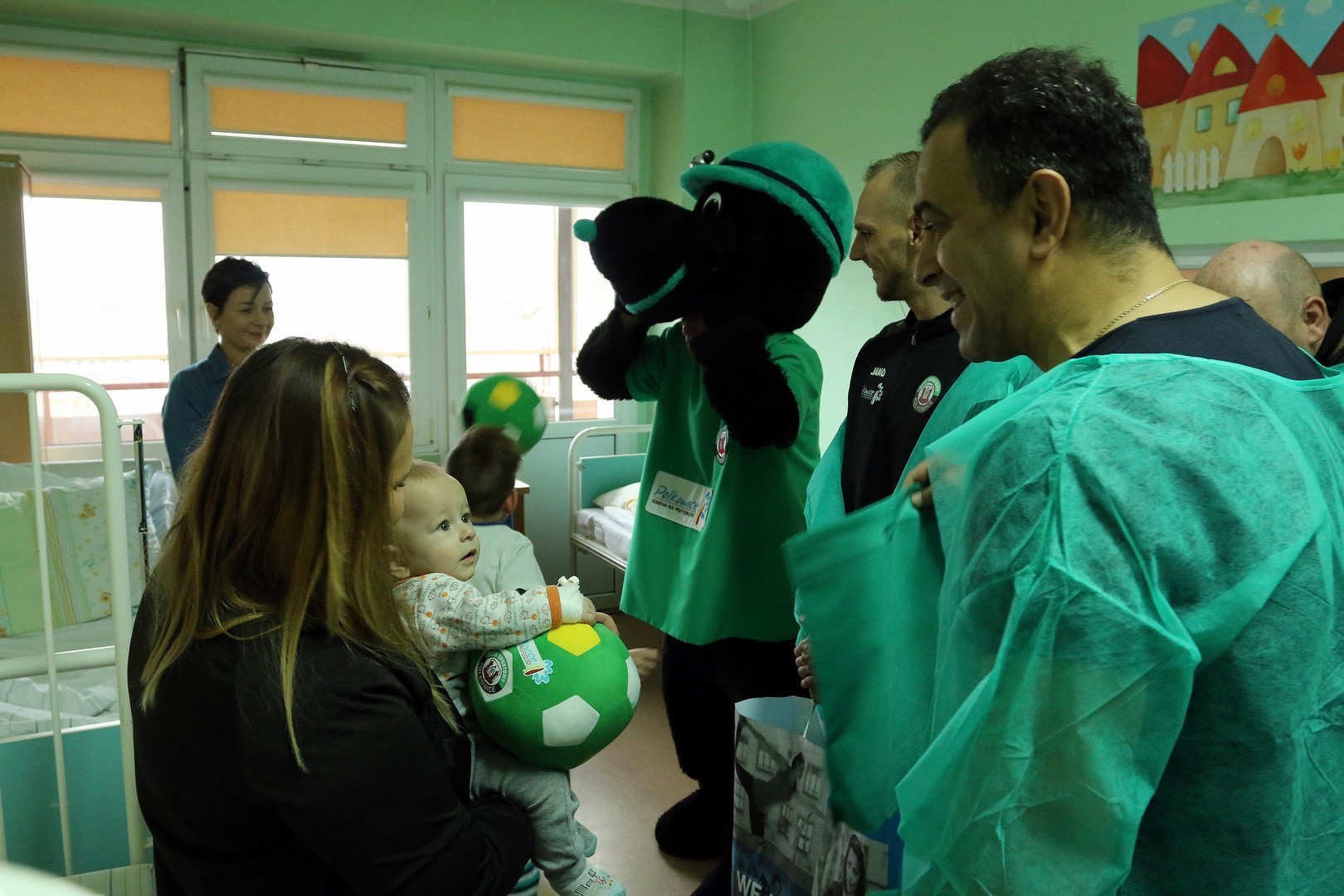 Na oddział pediatryczny przybyli: trener Enkeleid Dobi oraz piłkarze – Marcin Furtak, Filip Baranowski, Krzysztof Staśkiewicz oraz Dominik Radziemski. Nie zabrakło również naszej klubowej maskotki – Krecika.